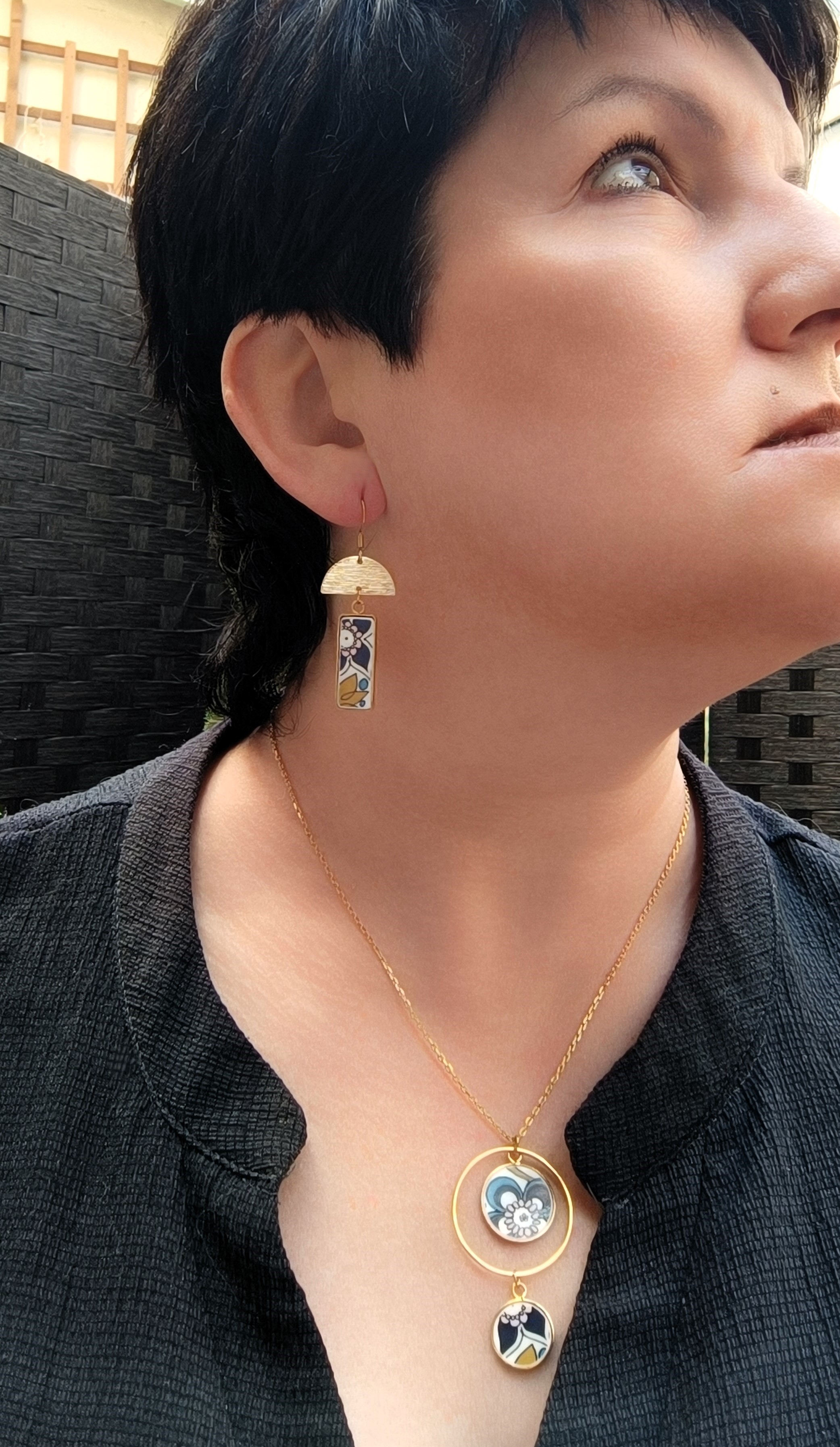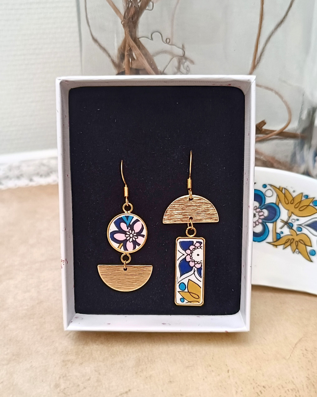 NOCTURNE – Boucles d’oreilles en porcelaine ancienne Royal Tuscan – Création artisanale française