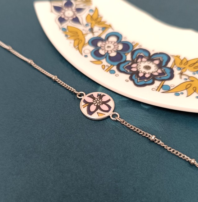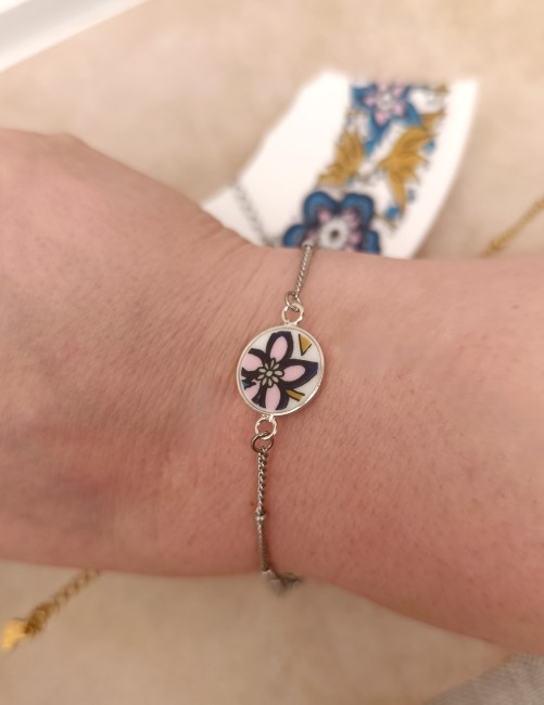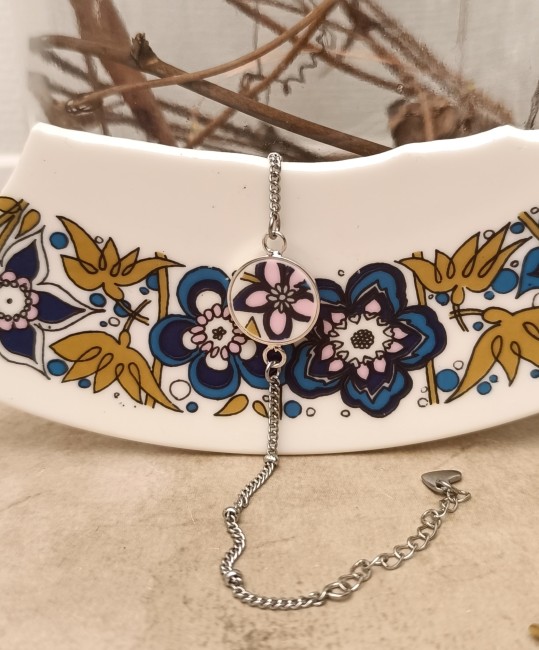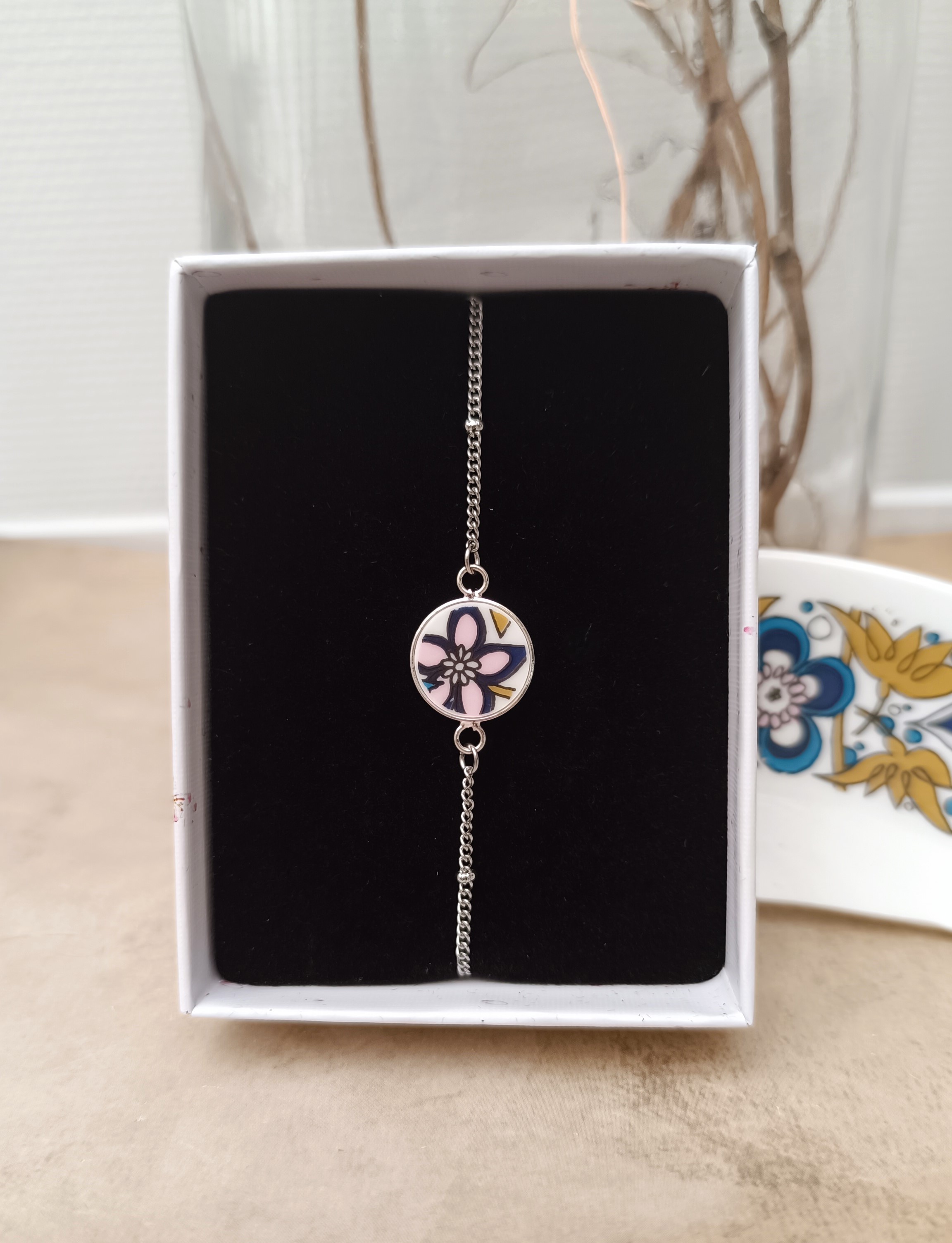 Ce bracelet a été façonné à partir d’une assiette modèle Nocturne de la maison Royal Tuscan.