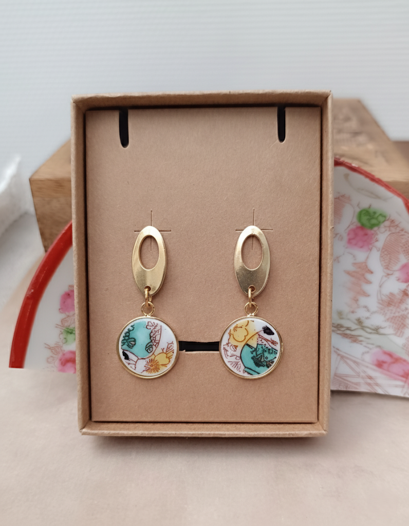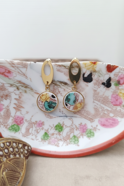 Boucles d’oreilles Geisha – Porcelaine japonaise vintage upcyclée
