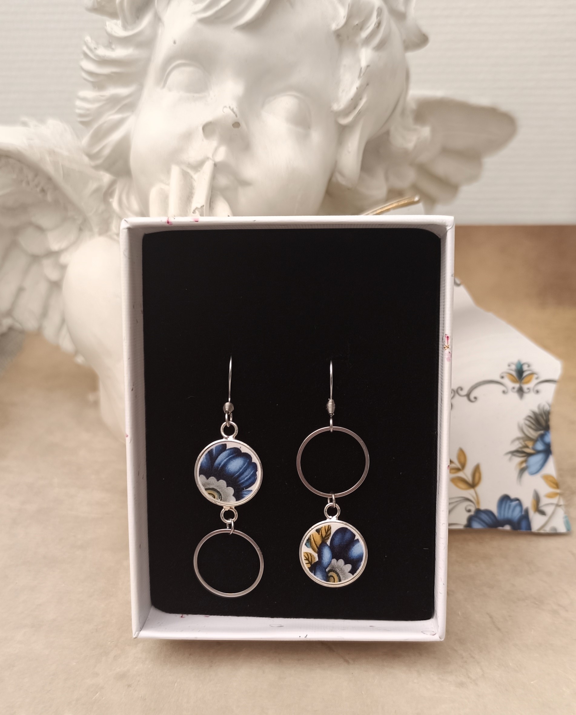 Boucles d’oreilles asymétriques Saphir - Faïnece ancienne Moulin des Loups