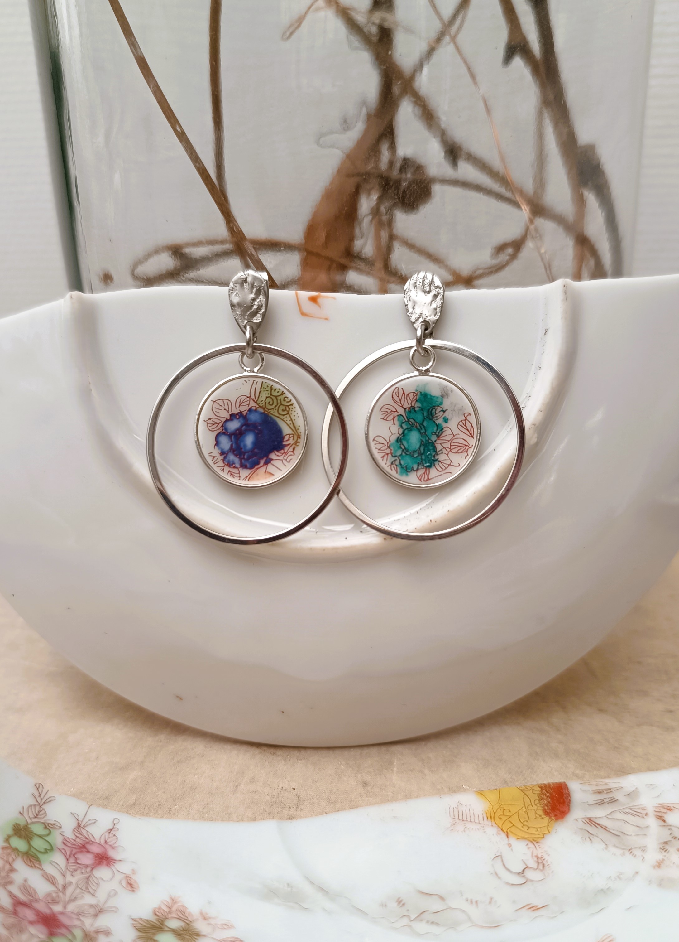 En attendant que vous me confiiez la vôtre, j’ai transformé cette sous-tasse en porcelaine fine japonaise des années 1950 (Suzuki) en une paire de boucles d’oreilles originales et poétiques.