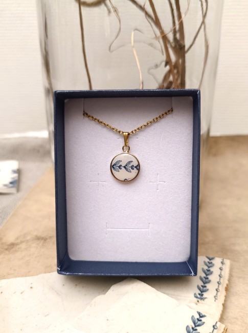 Cadeau idéal pour les noces de faïence (9 ans) ou de porcelaine (20 ans) : ce pendentif raconte une histoire et célèbre l’amour durable avec poésie et délicatesse.