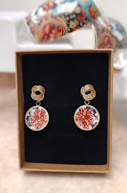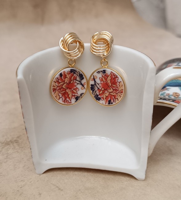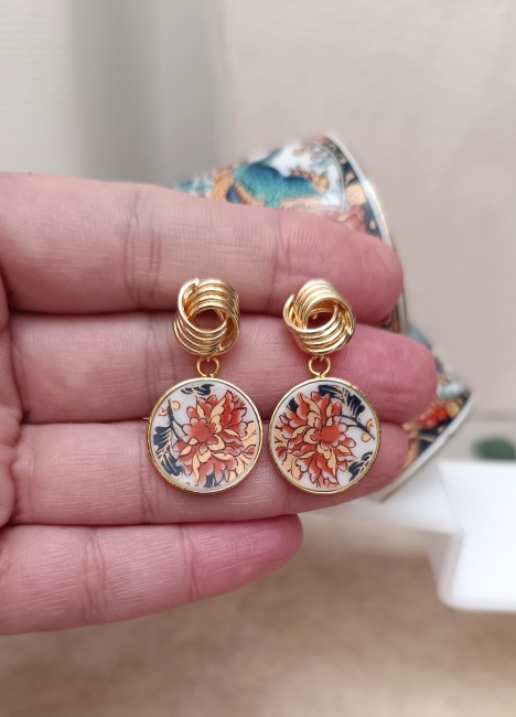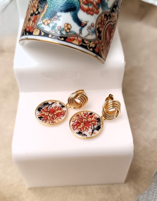 Chaque paire de boucles d’oreilles est une pièce unique, façonnée à la main à partir de vaisselle ancienne chinée avec soin.