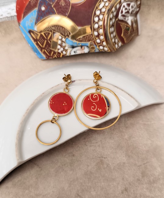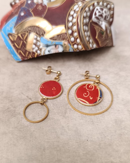 SATSUMA – Boucles d’oreilles en porcelaine japonaise ancienne – Création artisanale française