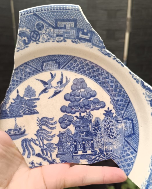 Faïence ancienne anglaise Old Blue Willow (vers années 1950)
