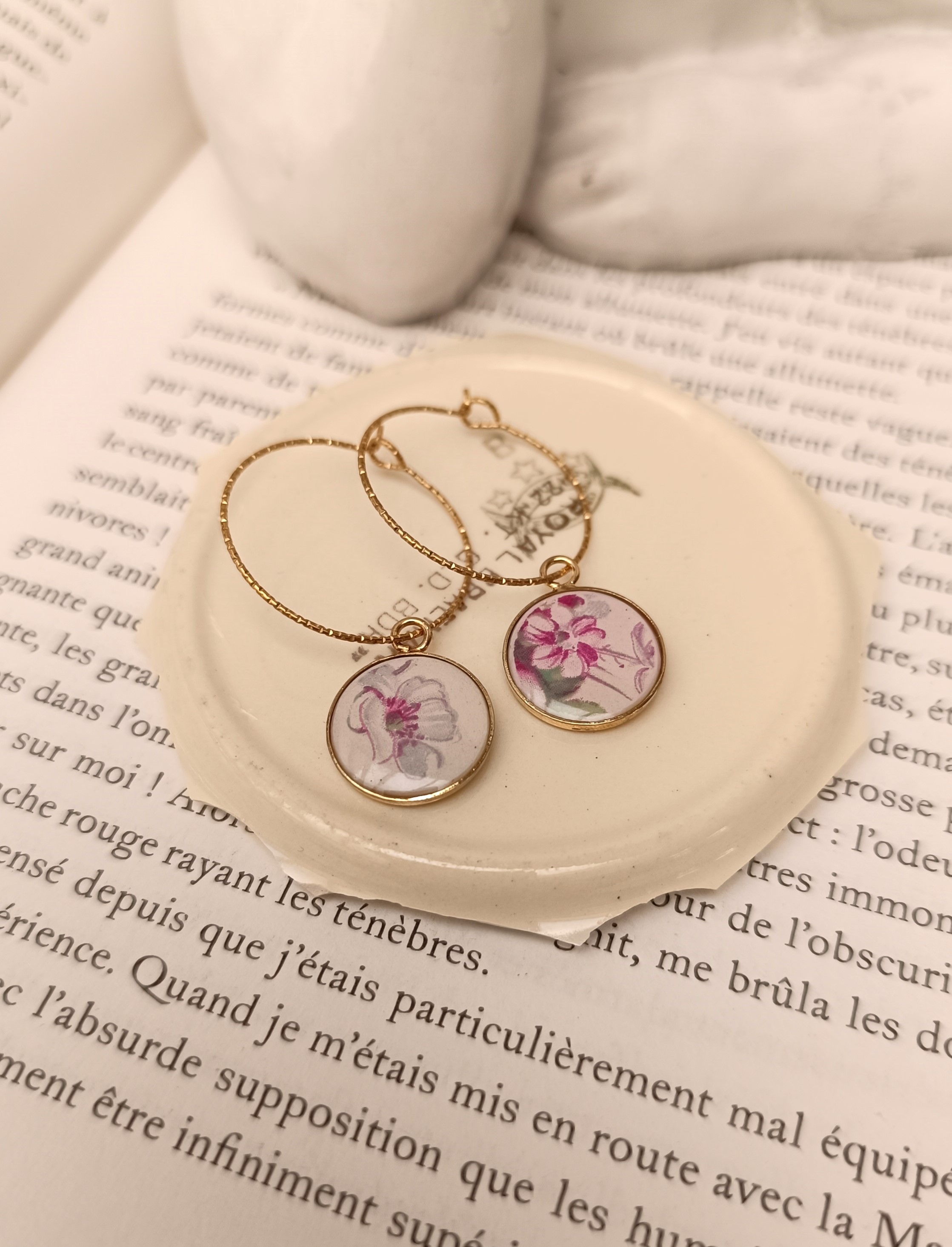 Boucles d'oreilles créoles “Romantika” – Faïence ancienne Royal Braemar 1940 – Création artisanale française