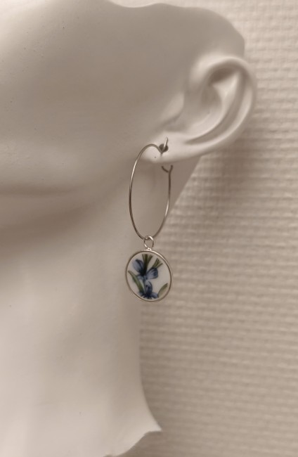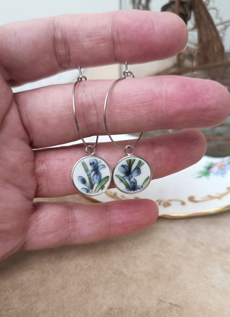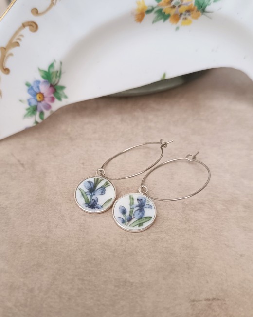 Boucles d'oreilles créoles – Porcelaine anglaise vintage – Création artisanale française