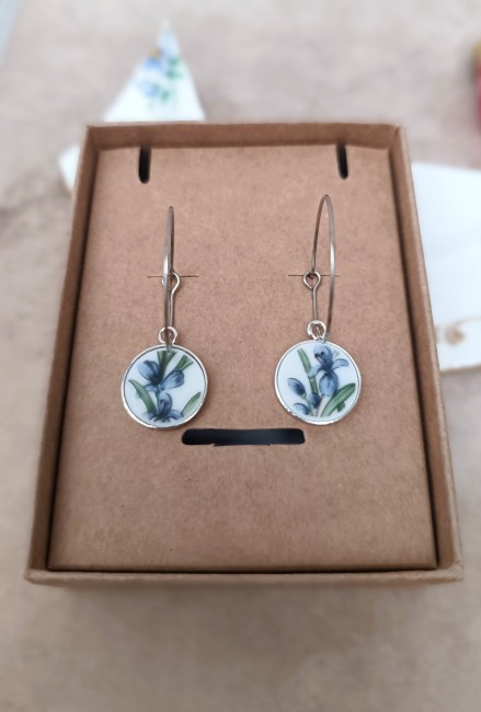 Ces boucles sont nées de la métamorphose d’une assiette en porcelaine Royal Worcester Herbs - Sage (1990).