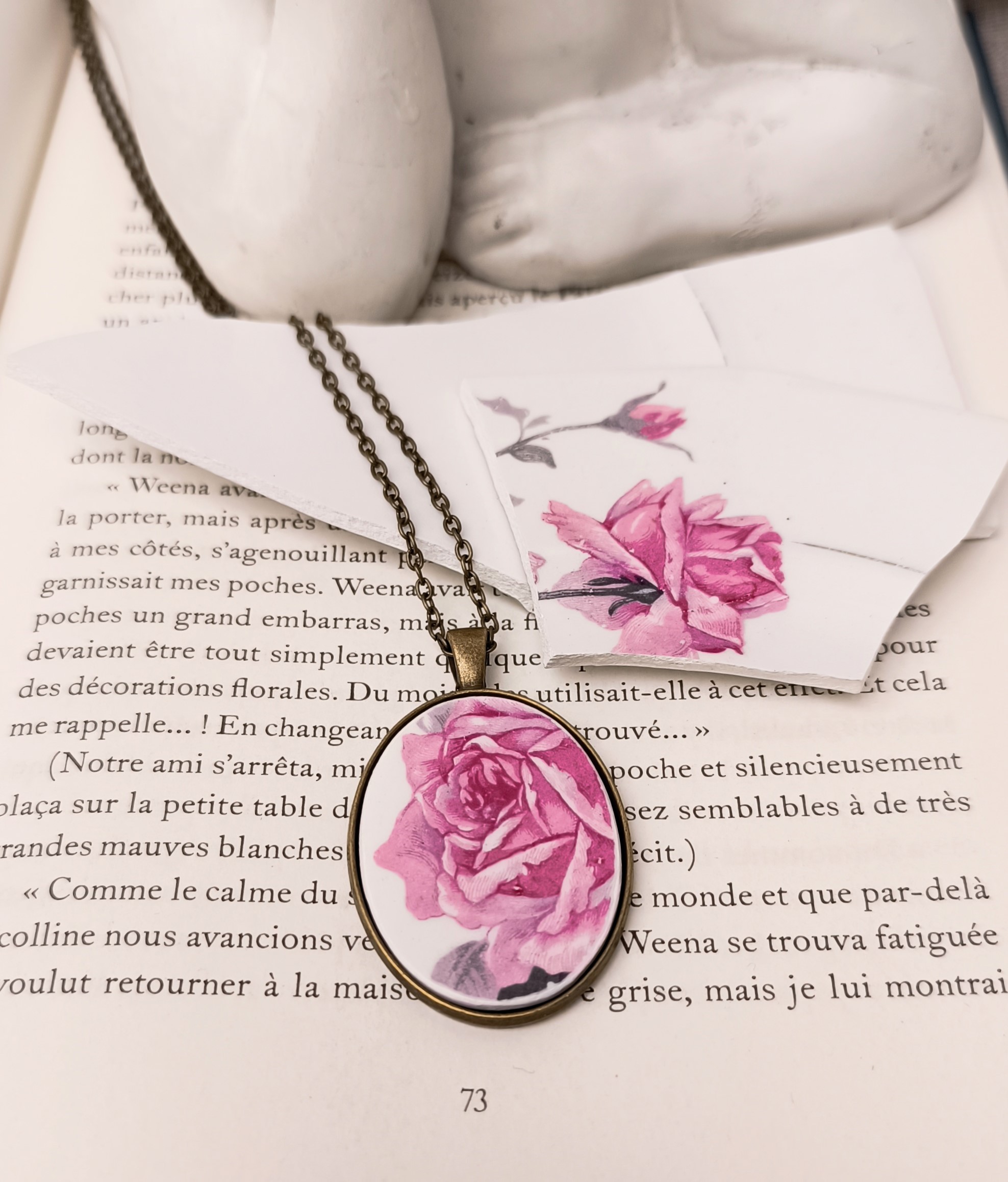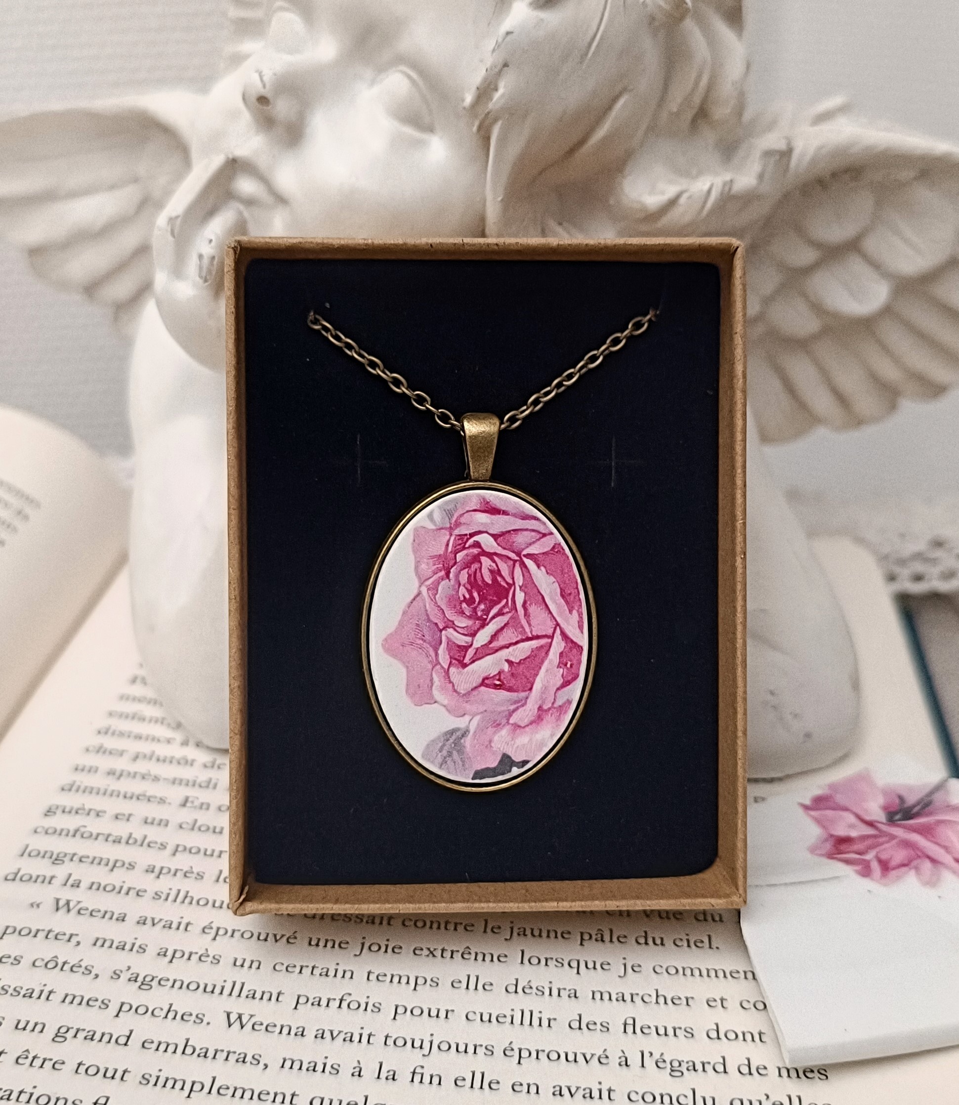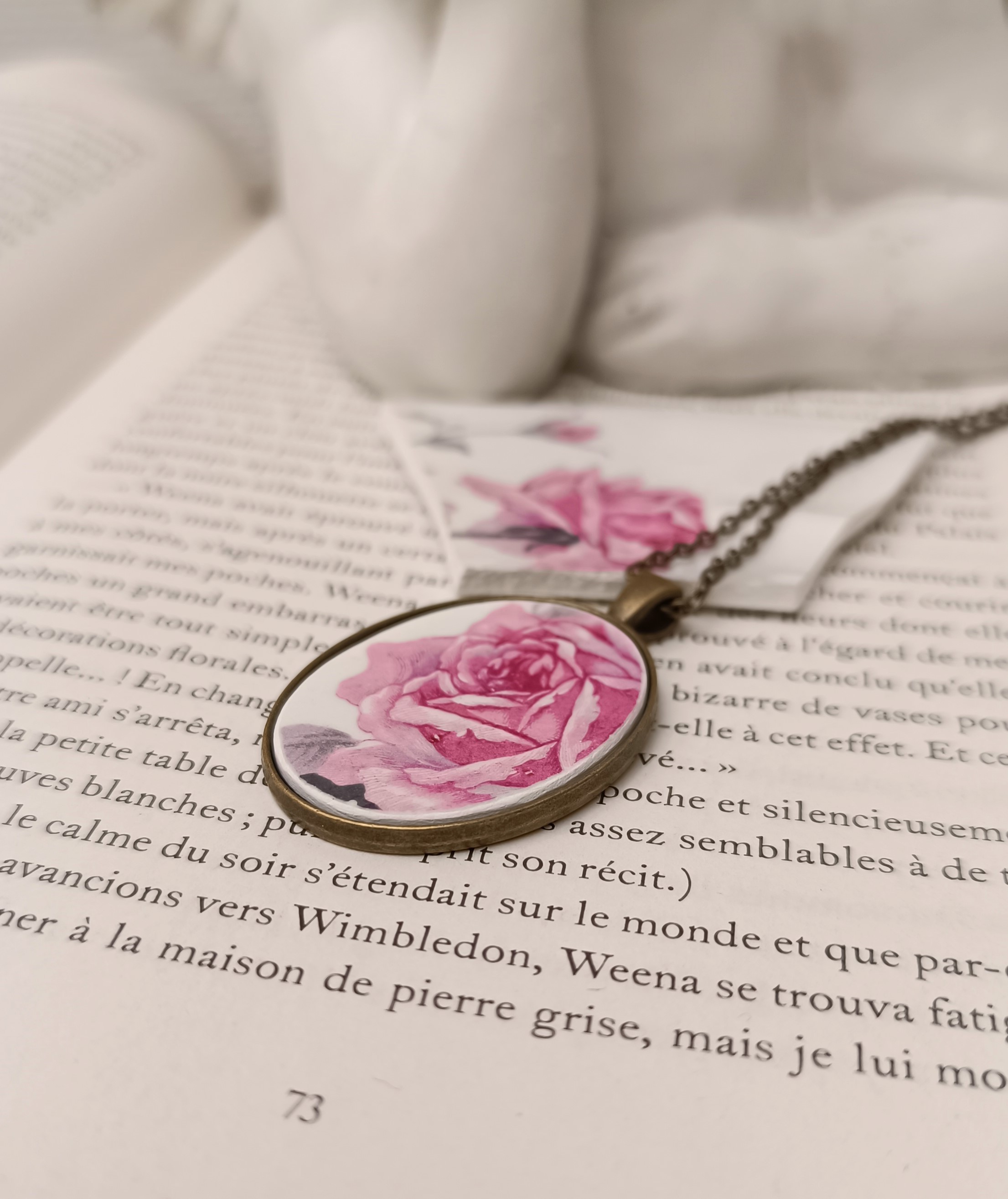 Pendentif ROSE ROSE– Faïence ancienne recyclée – Création artisanale française