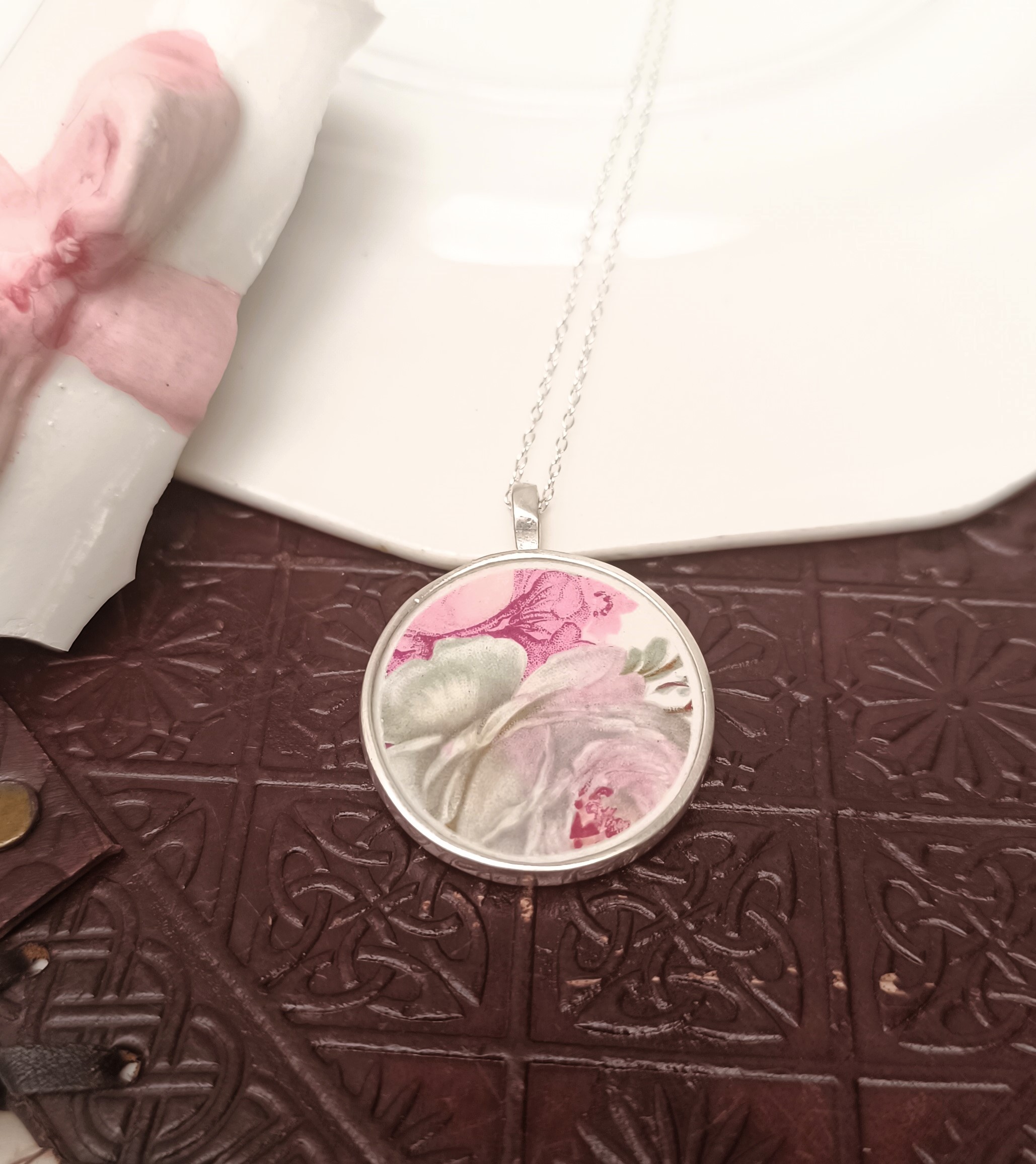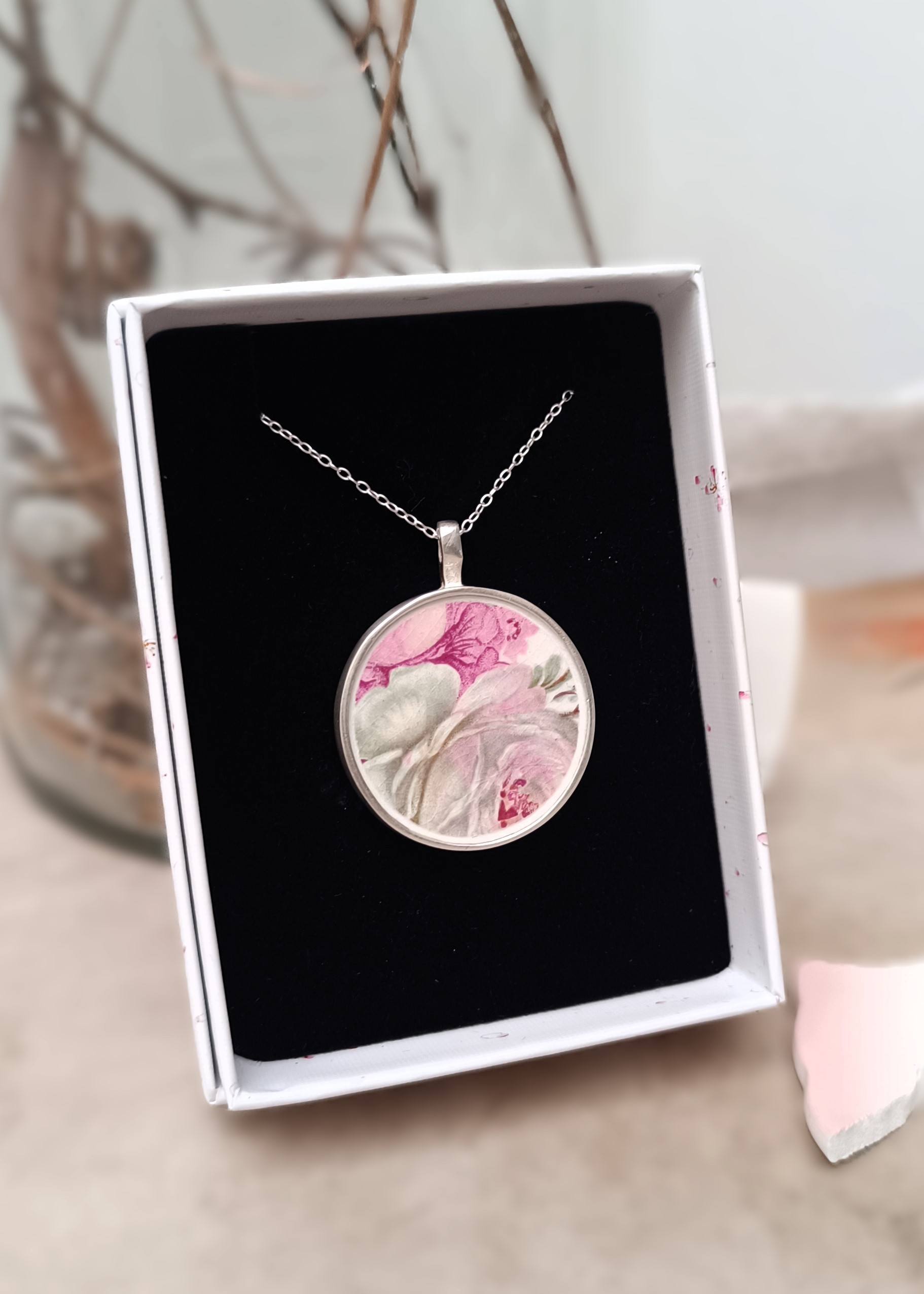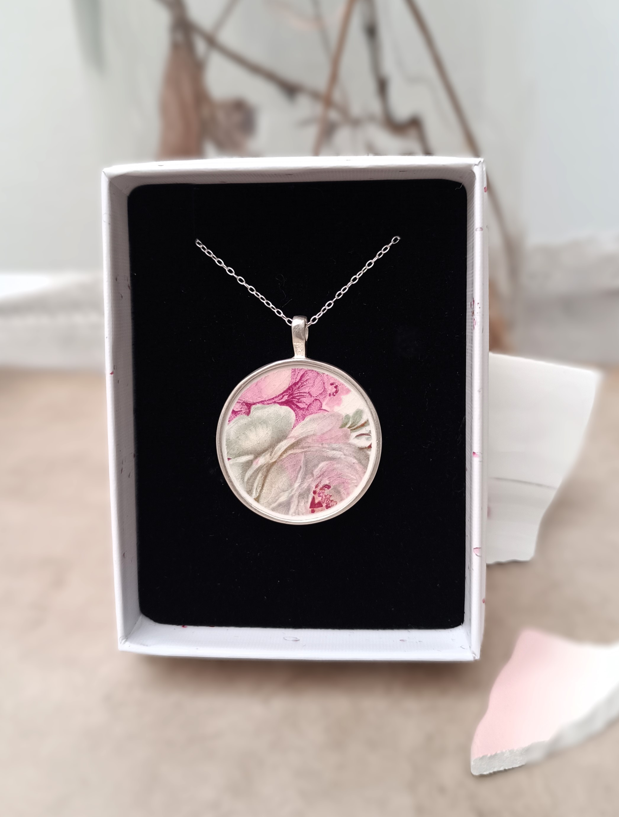 Ce pendentif est une pièce unique, façonné à la main à partir de vaisselle ancienne soigneusement chinée, pour créer un bijou durable, porteur de mémoire.
