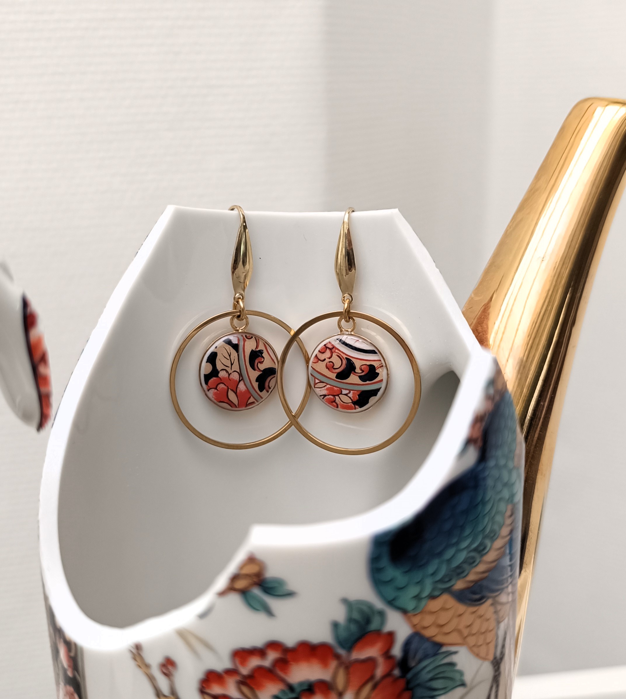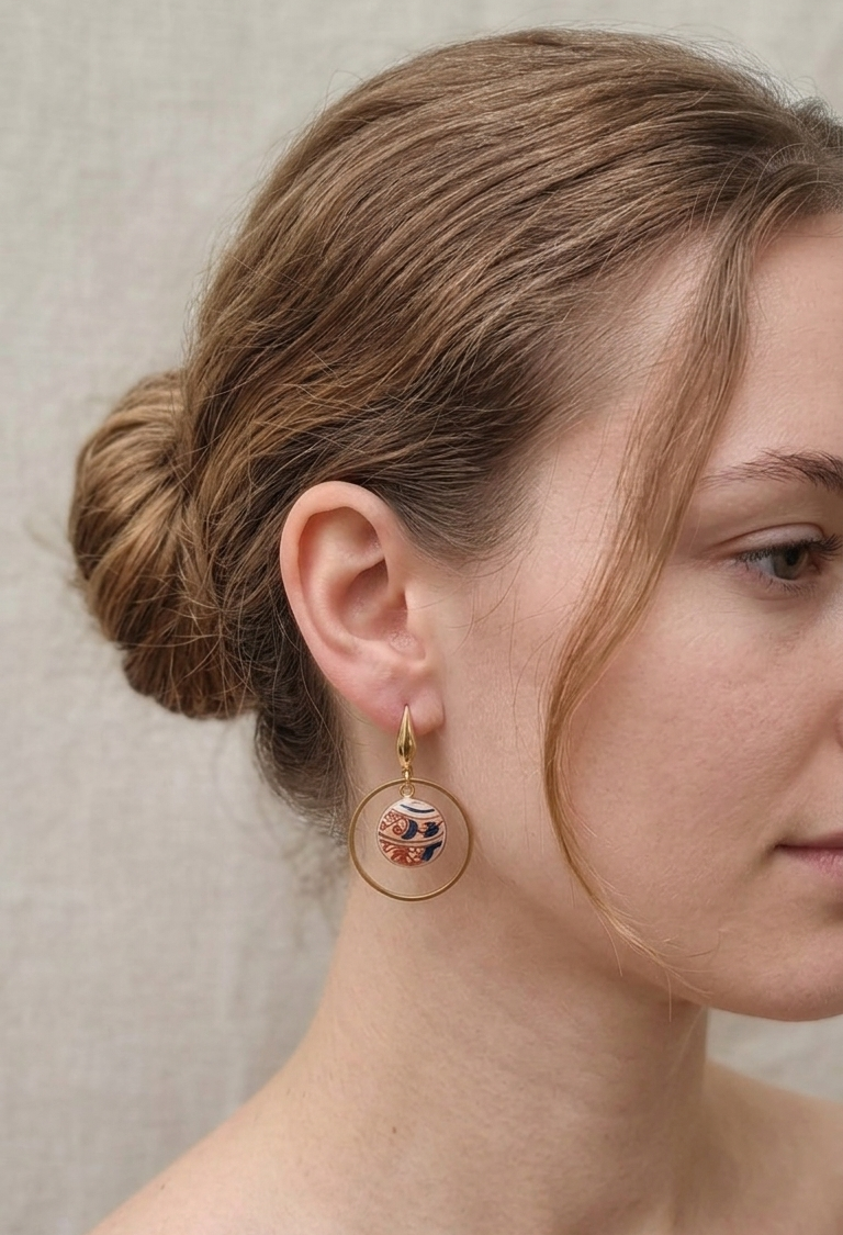 IMARI – Boucles d’oreilles en porcelaine japonaise ancienne – Création artisanale française