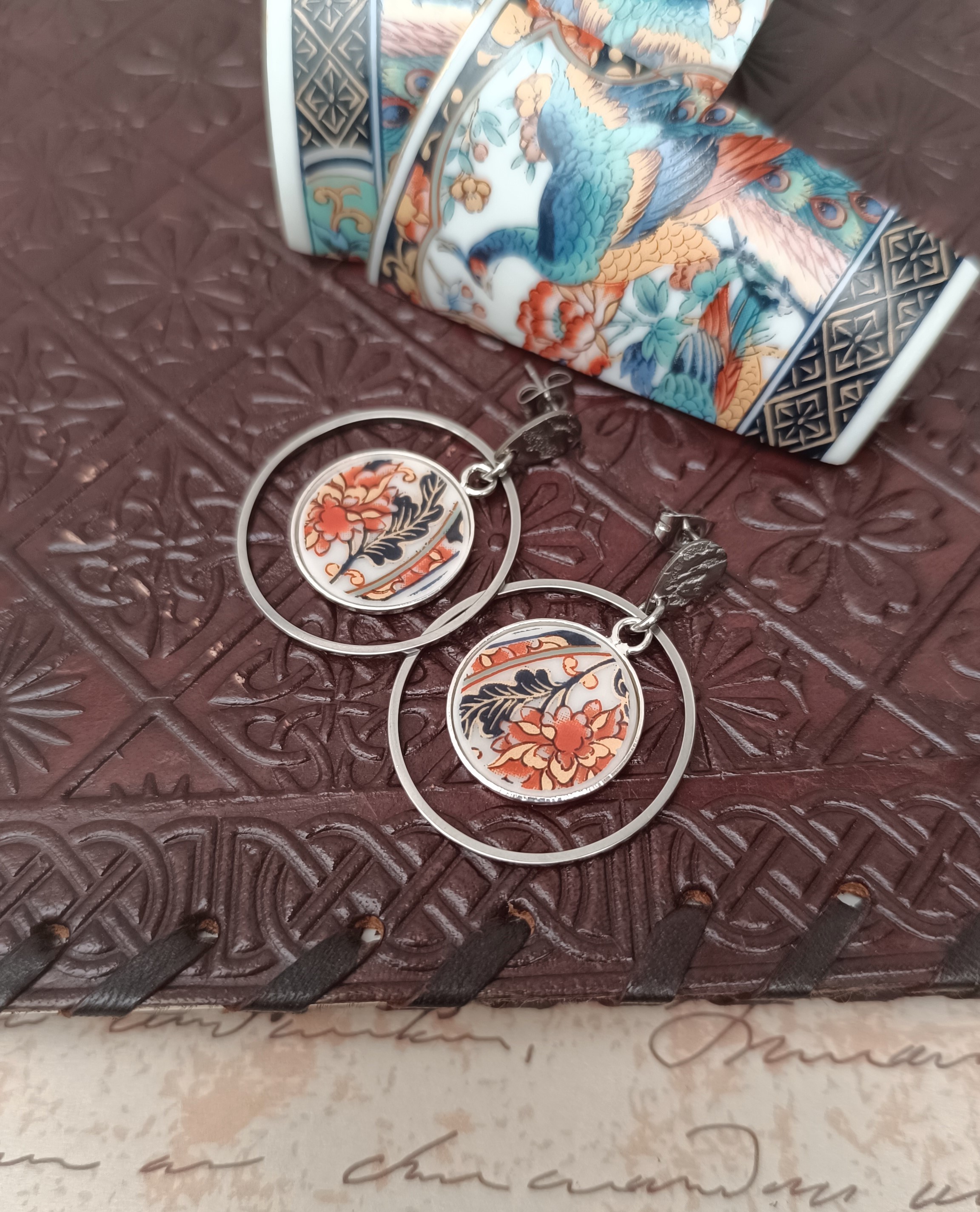 IMARI – Boucles d’oreilles en porcelaine japonaise ancienne – Création artisanale française