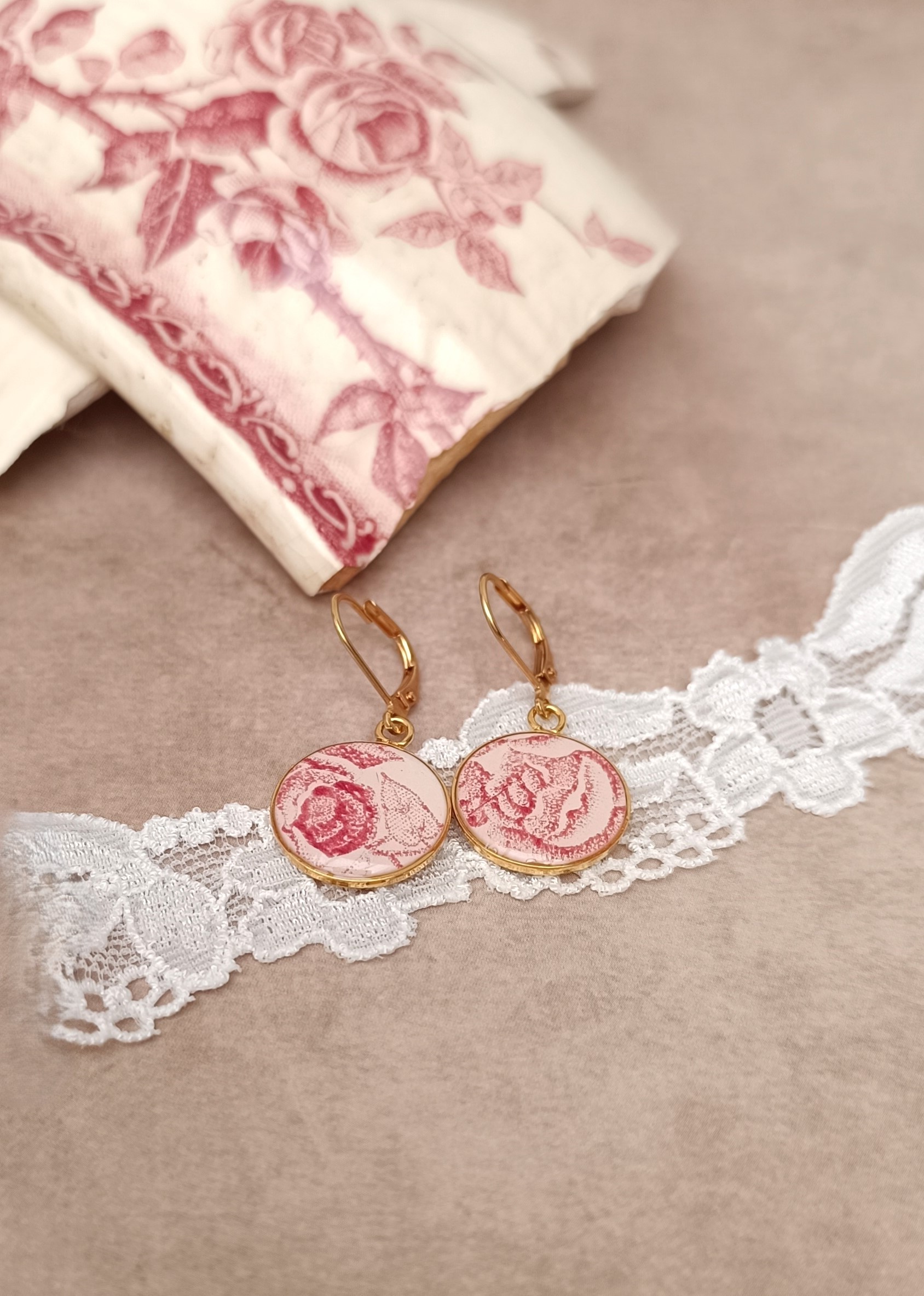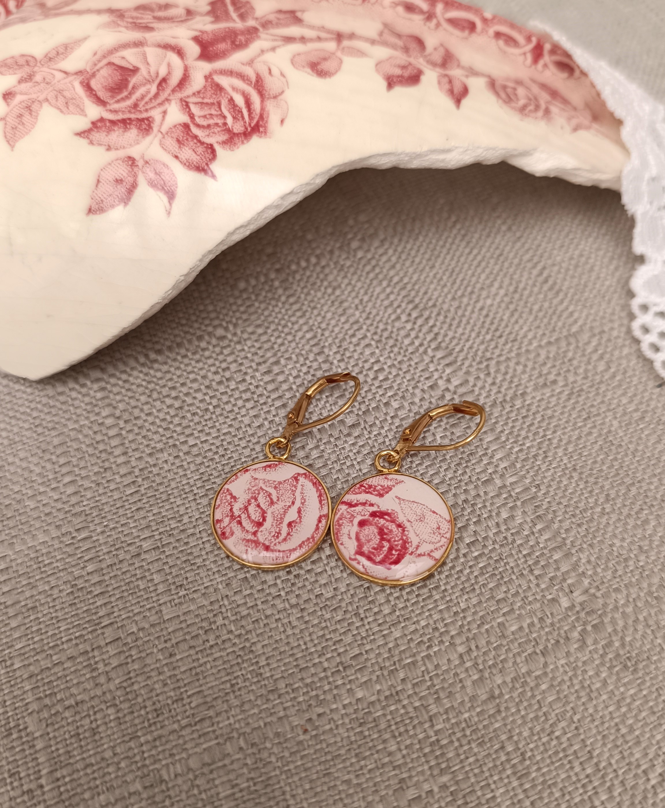 Ces boucles Romantika sont nées de la métamorphose d'un morceau de couvercle d'une soupière en faïence que j'ai reçue cassée. Leur délicate teinte crème et leurs motifs fleuris romantiques rappellent l’élégance des tables d’autrefois.