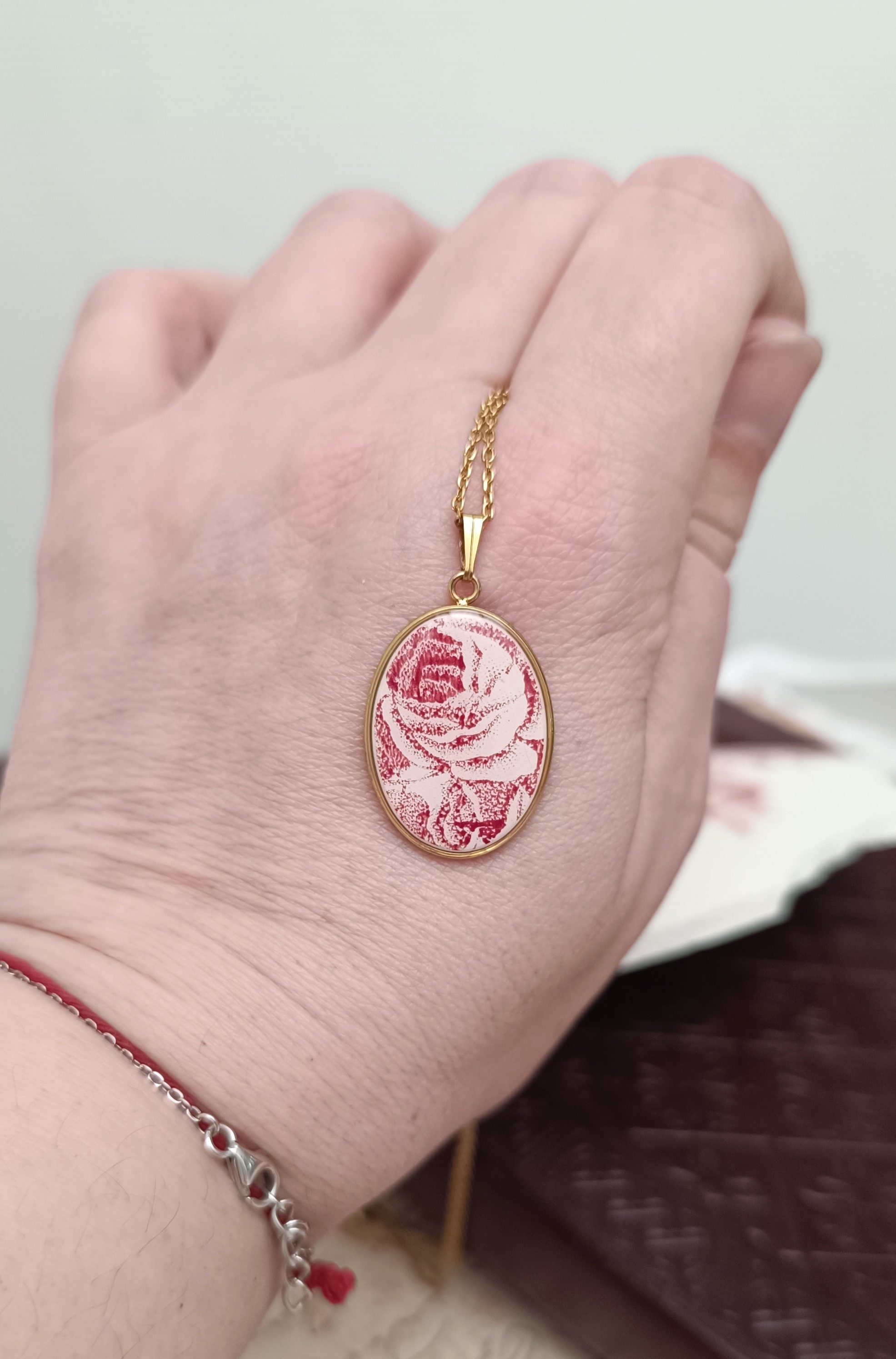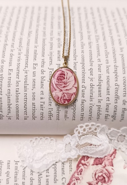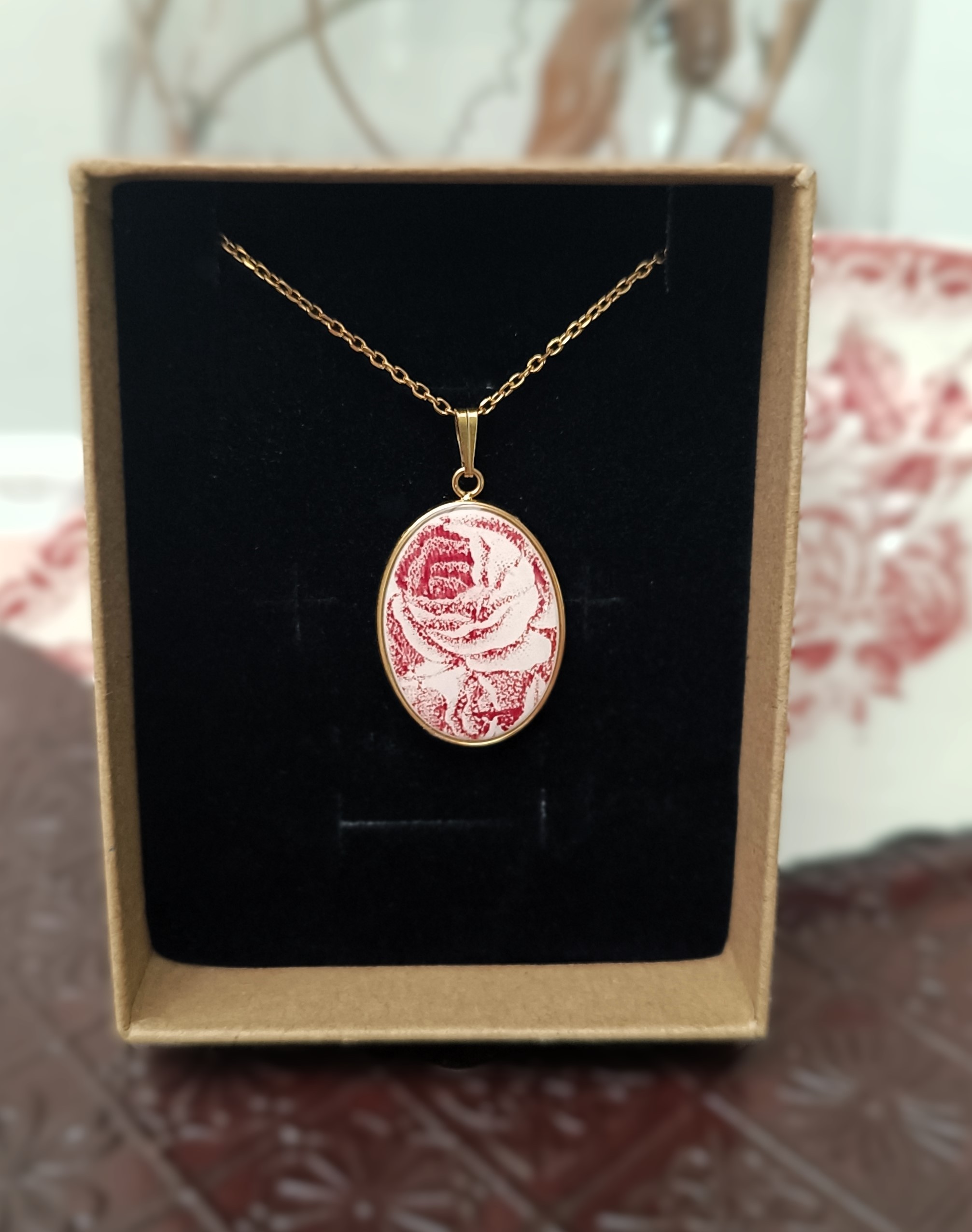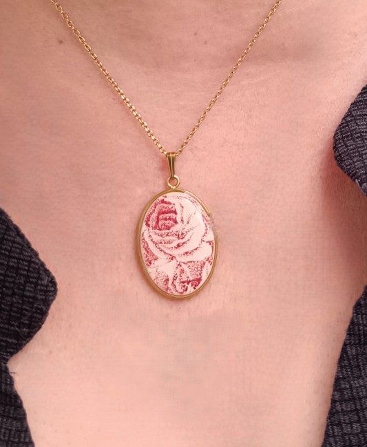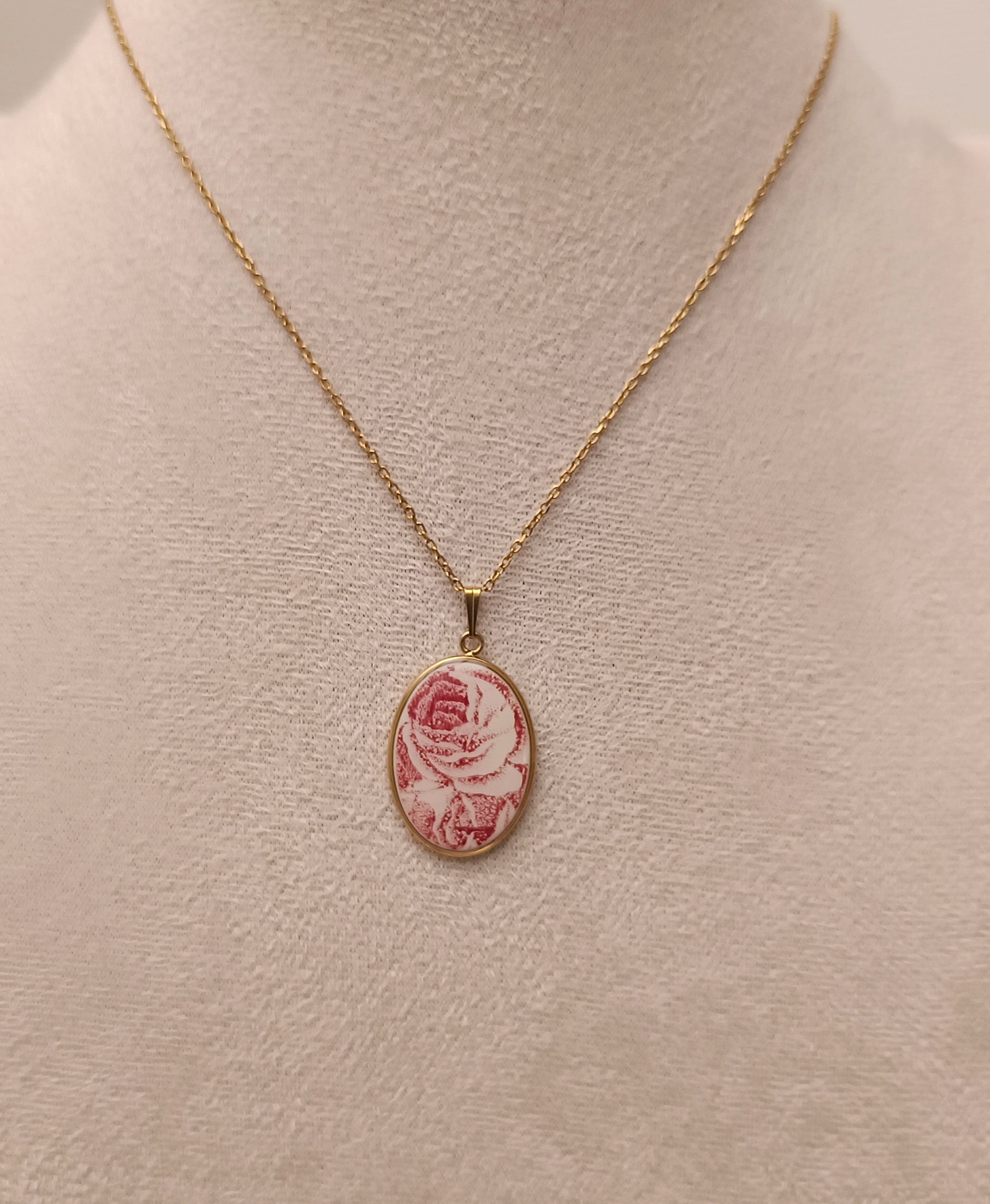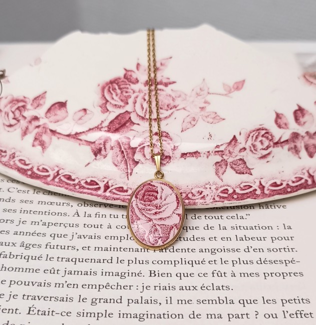Romantika - Collier au pendentif ovale en faïence ancienne – Création artisanale française