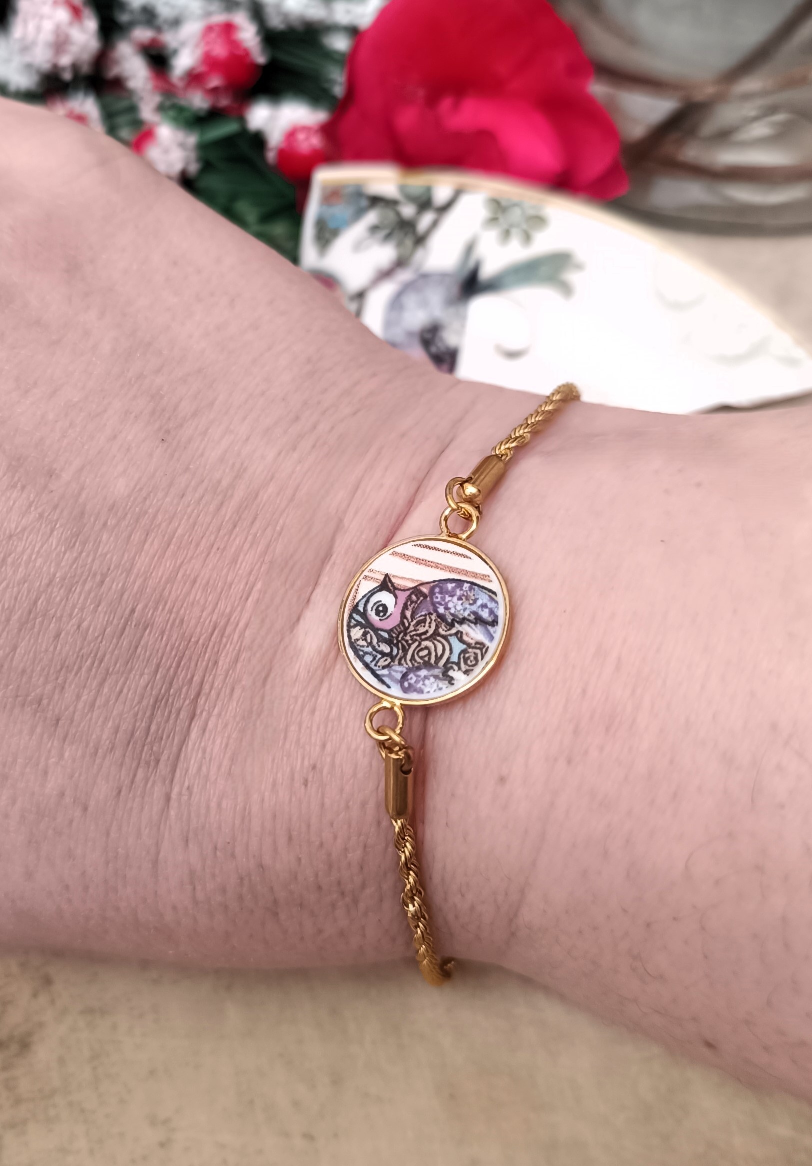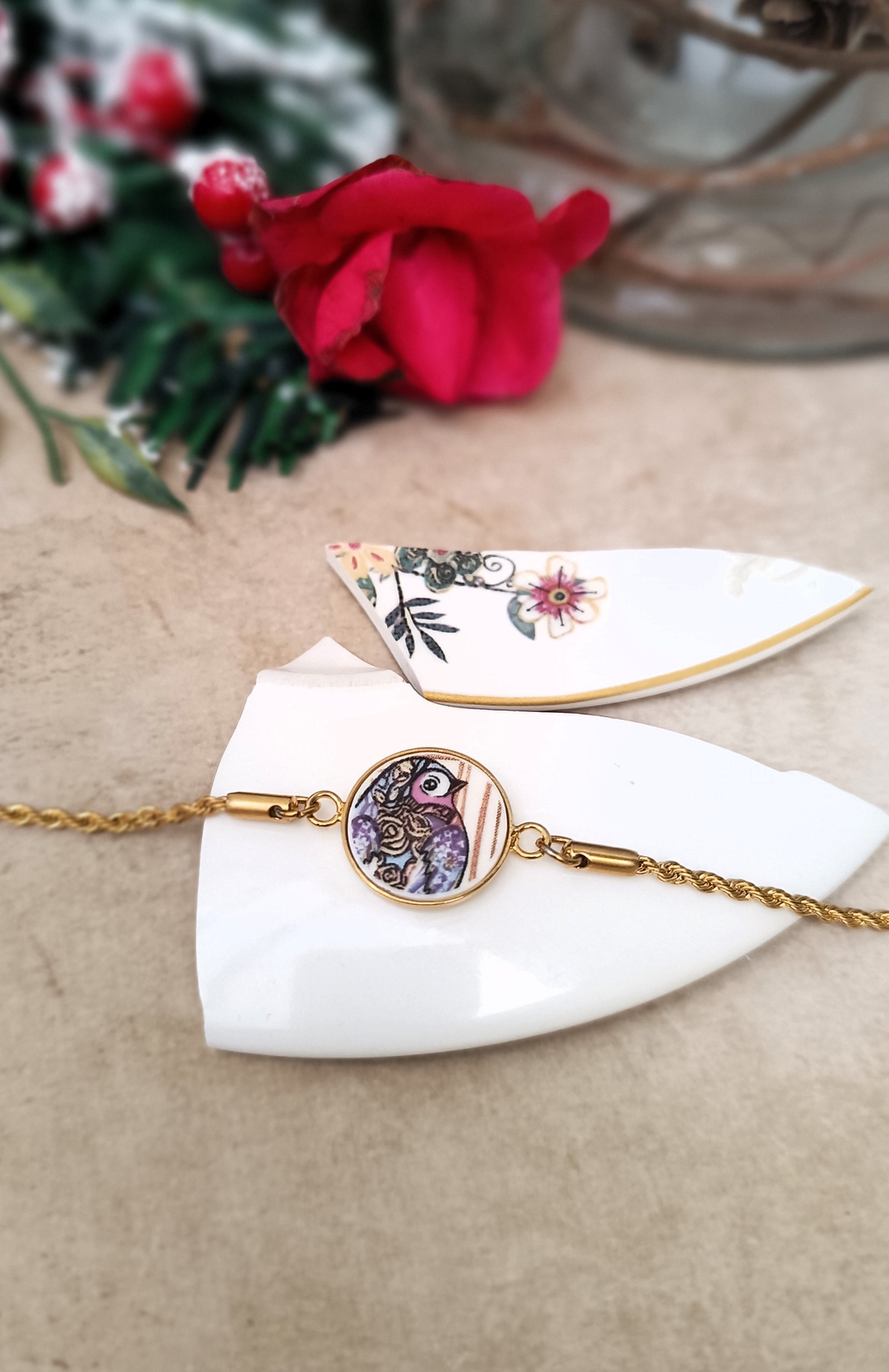 Bracelet À la Volette – Porcelaine ancienne transformée – Plaqué or 24K – Création artisanale française