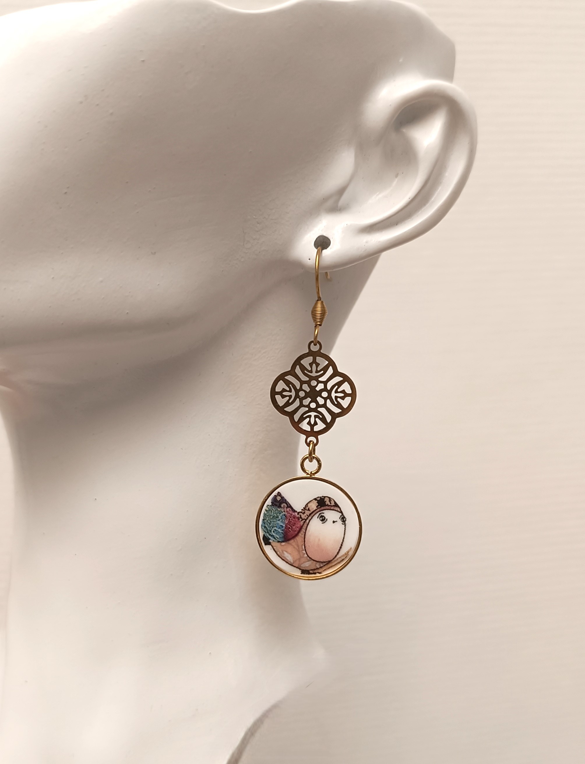 Boucles d’oreilles – À la Volette – Bijou en porcelaine transformée – Finition argent – Création artisanale française
