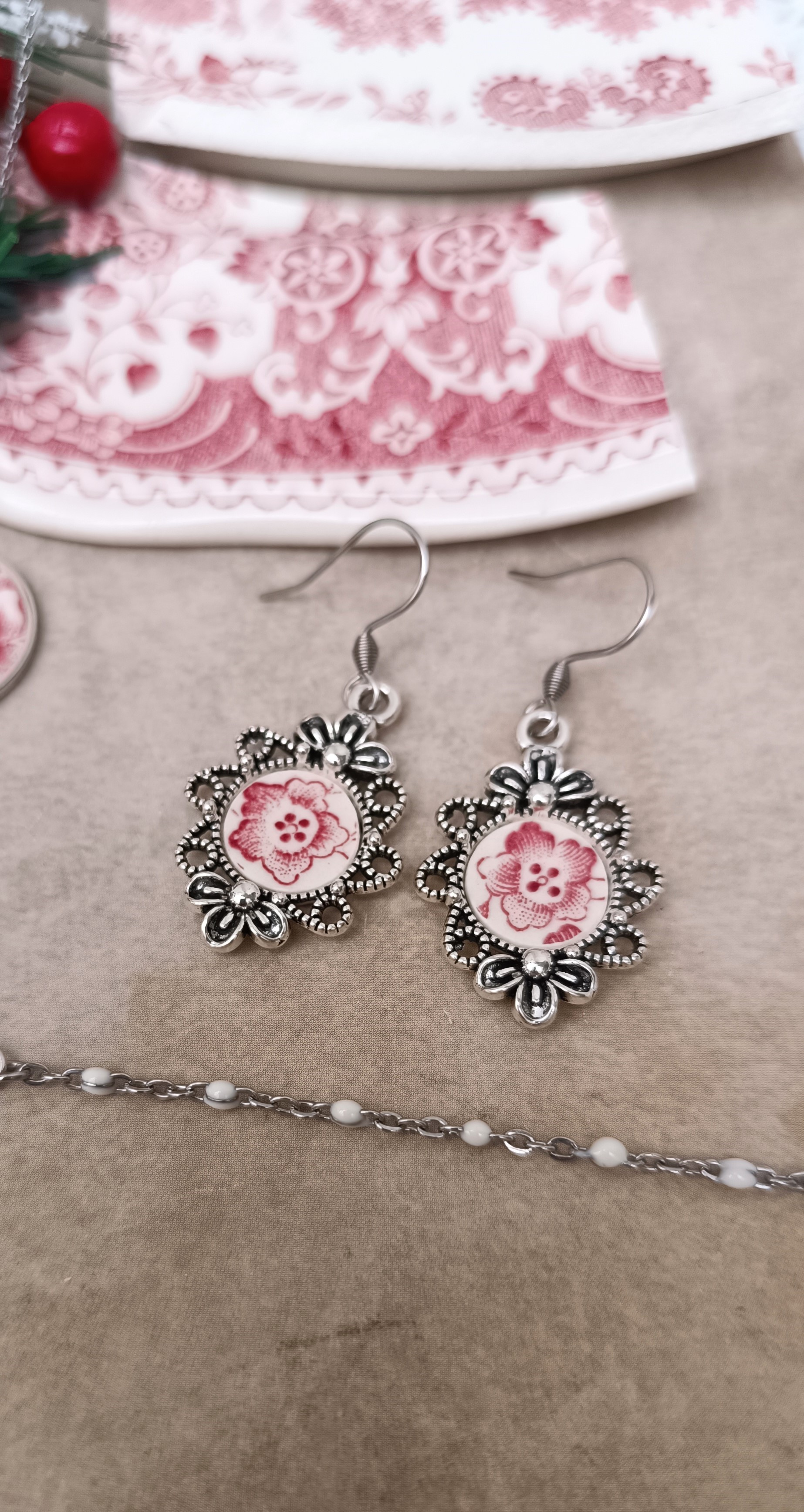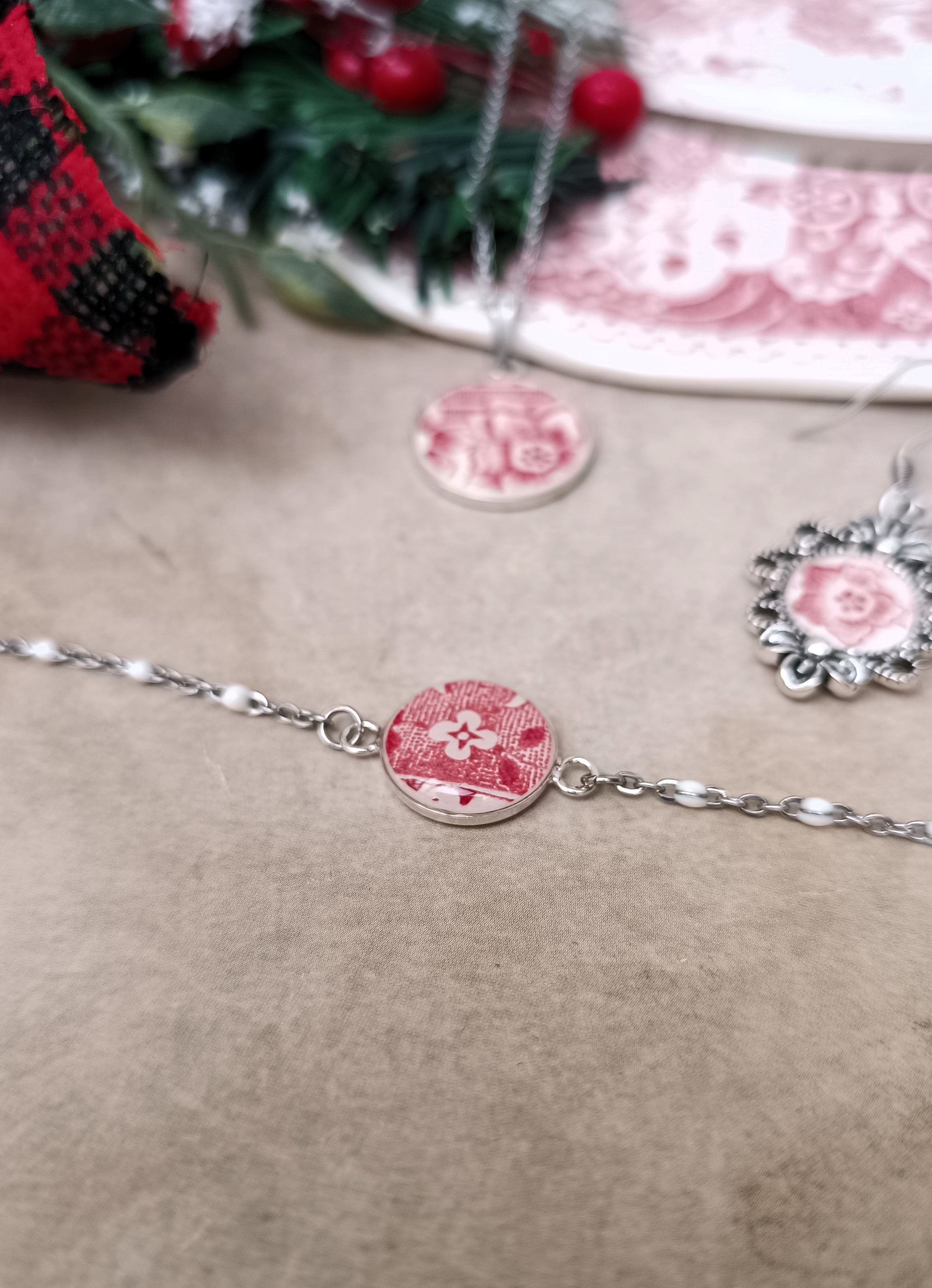 Bijoux créés à partir de la porcelaine familiale