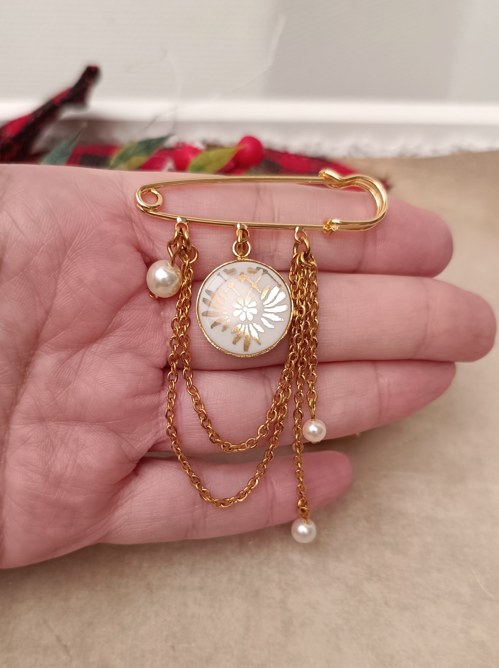 Broche CÉLESTE – Épingle en porcelaine de Limoges blanc et or