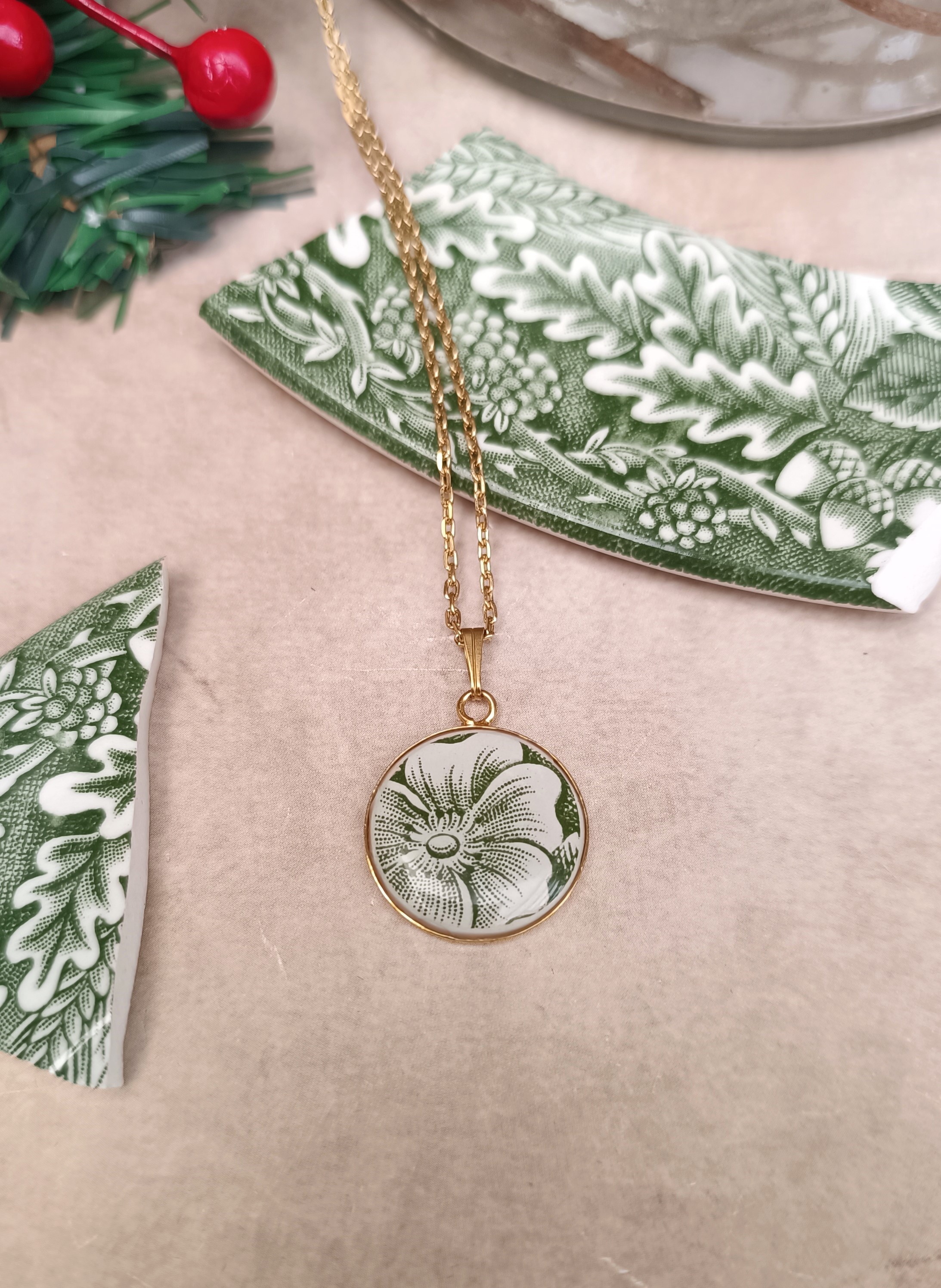 BOTANIKA – Collier en porcelaine anglaise vintage vert sauge