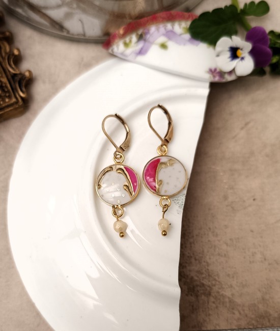 Chaque paire est unique : la découpe du fragment de porcelaine et les marques du temps (craquelures, patine, légers éclats) rendent chaque modèle irremplaçable.