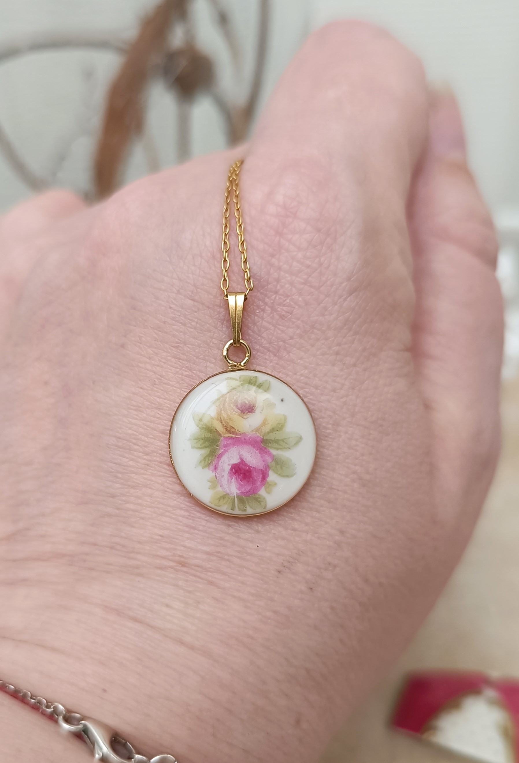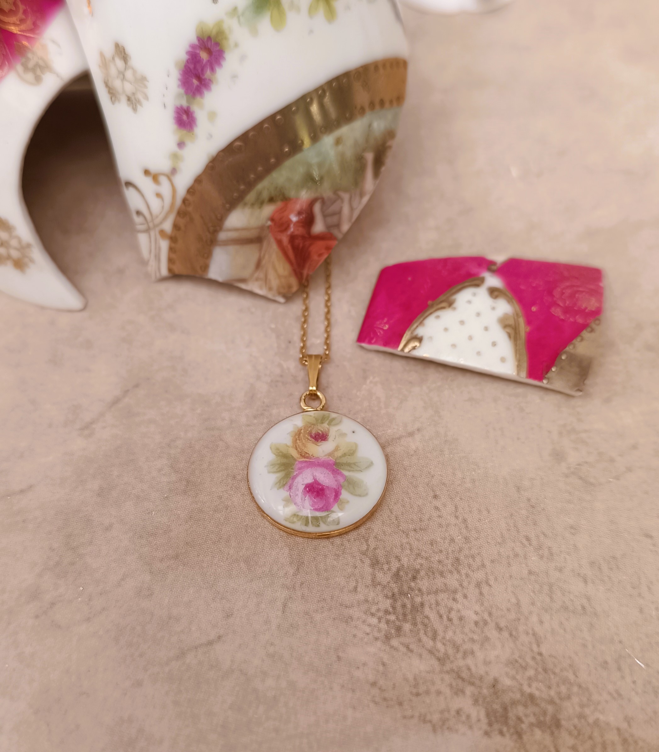 ROMANTIKA – Collier au pendentif plaqué or en porcelaine fine ancienne