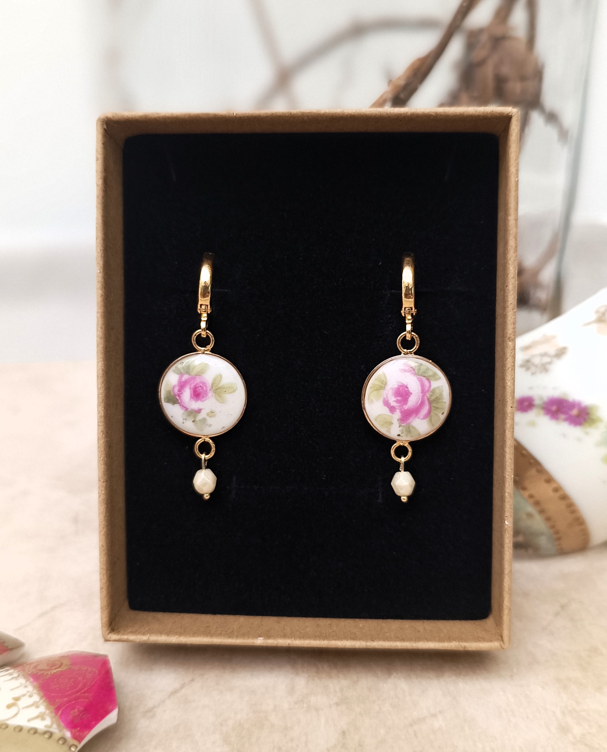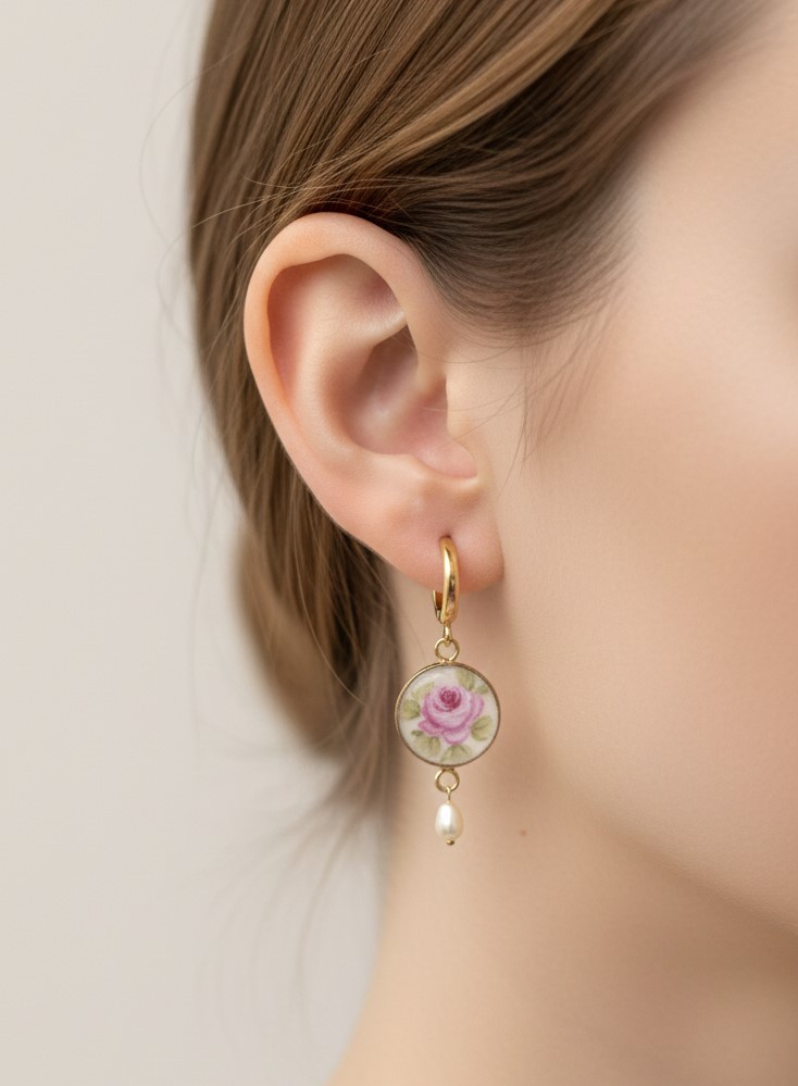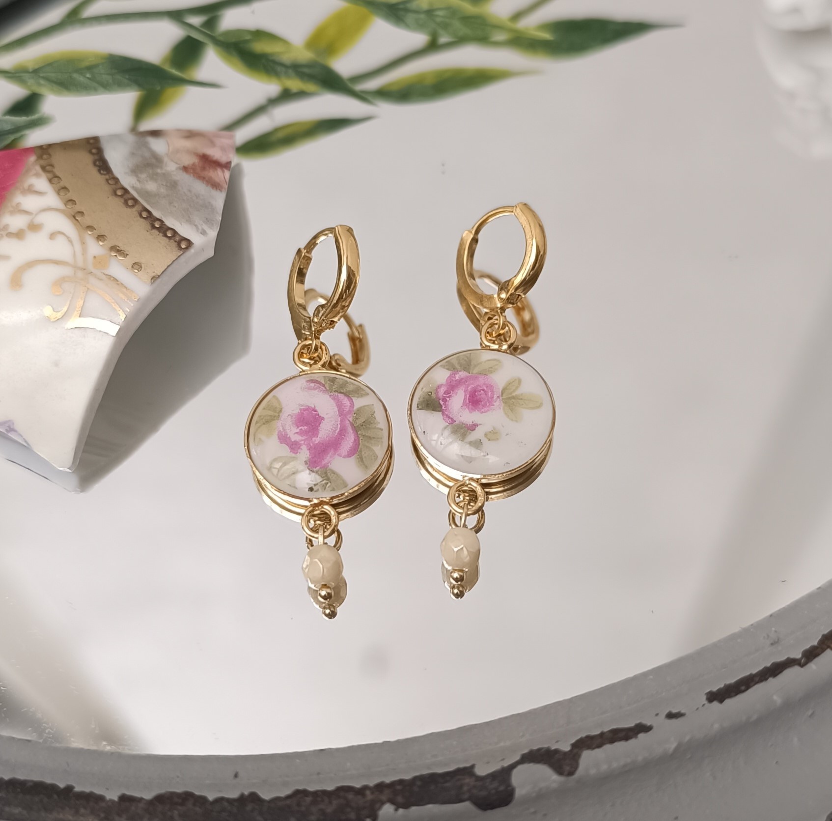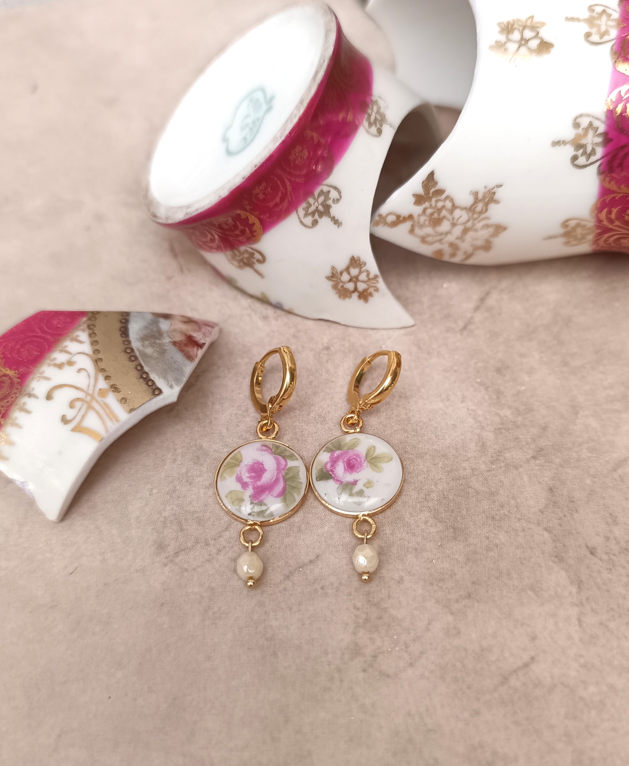 Boucles d’oreilles Romantika – Porcelaine fine ancienne de Gien– Création artisanale française