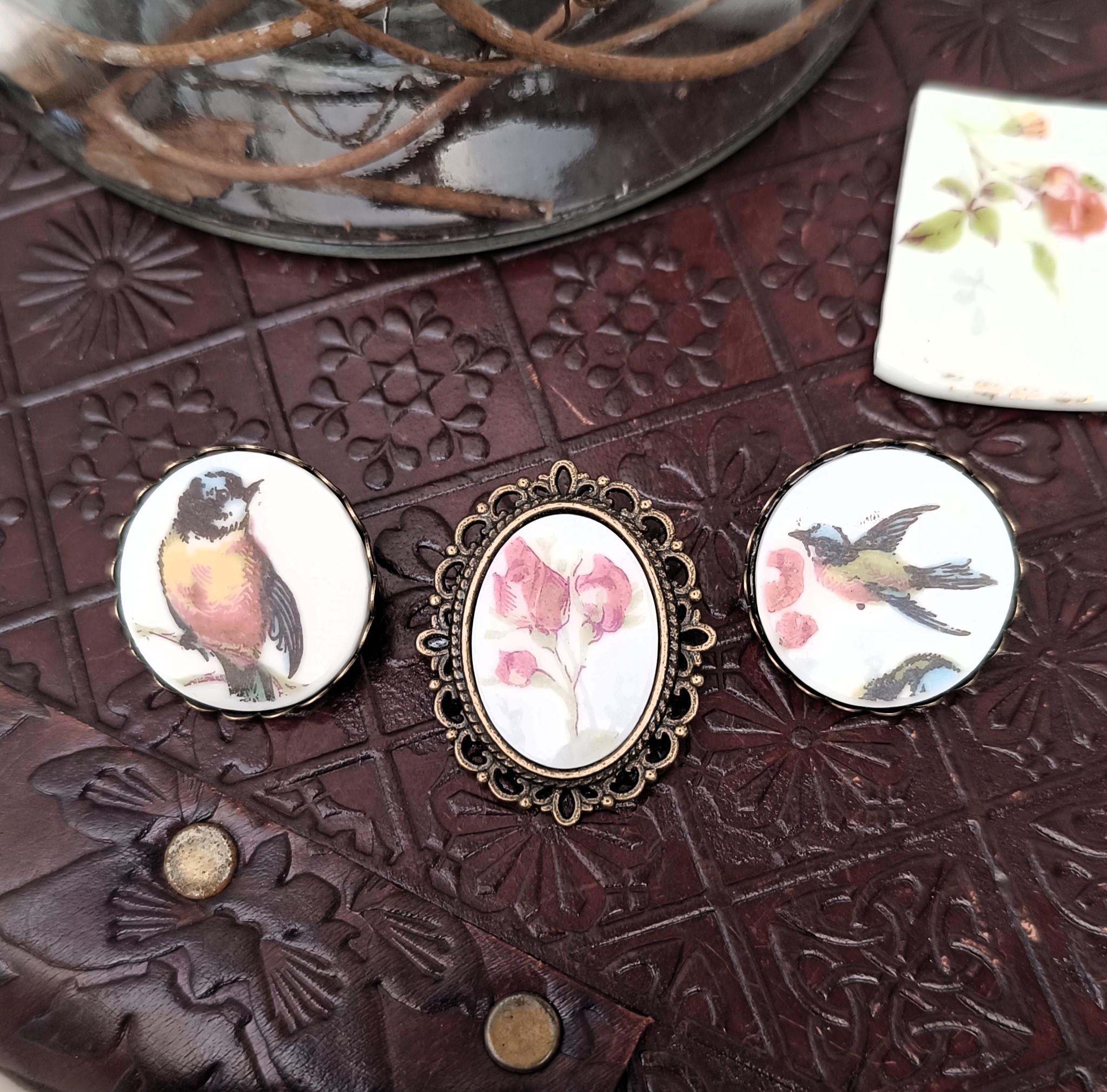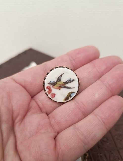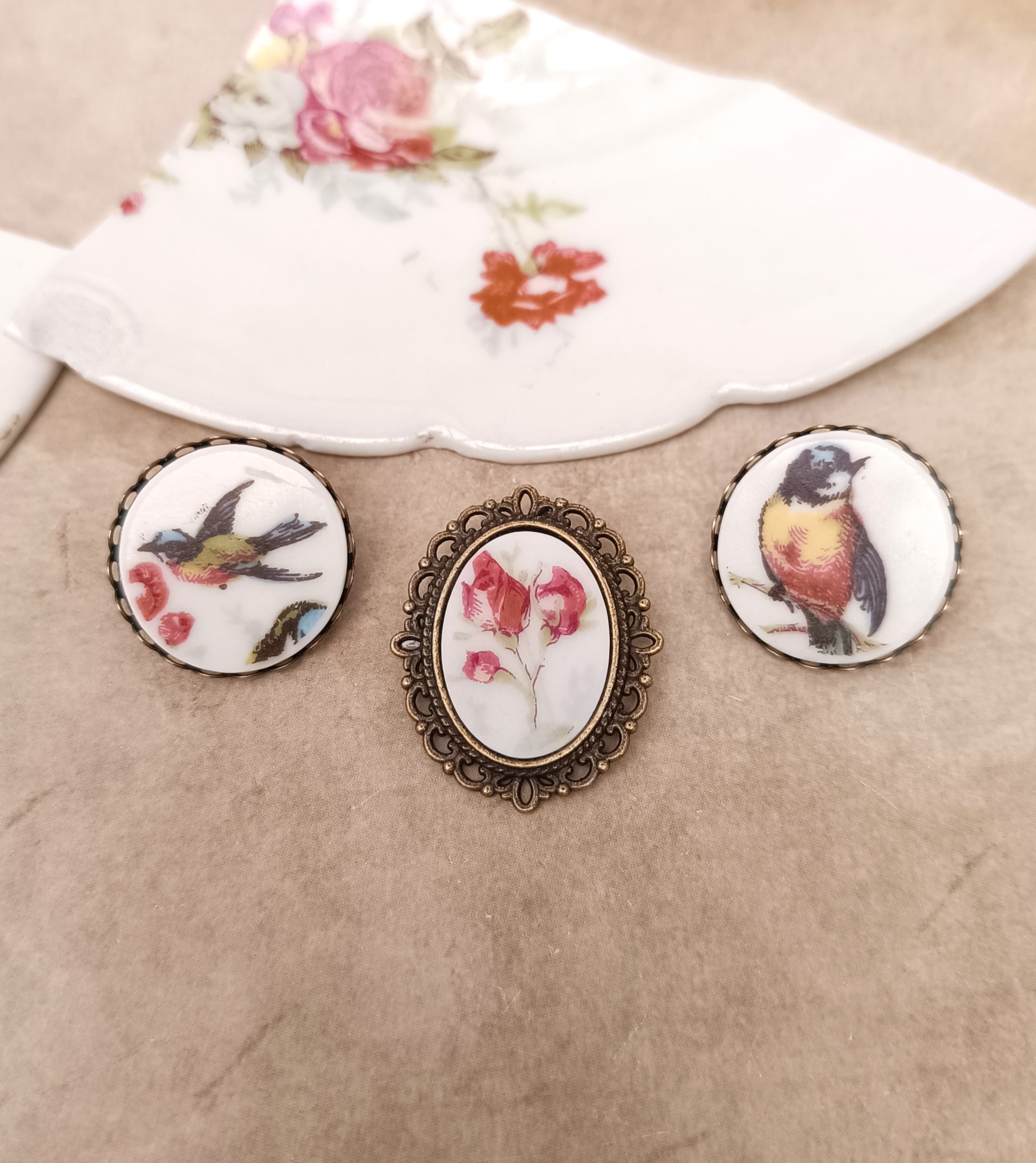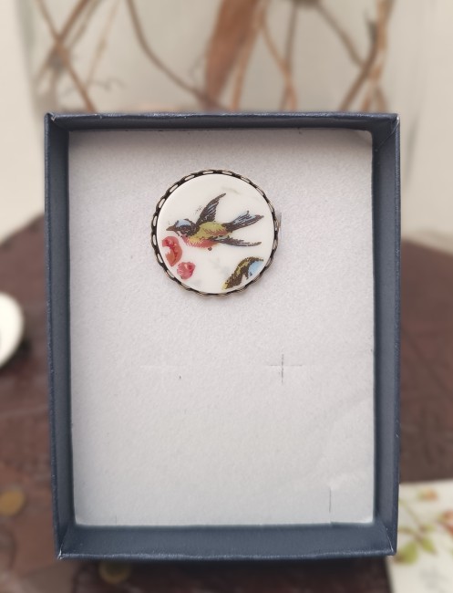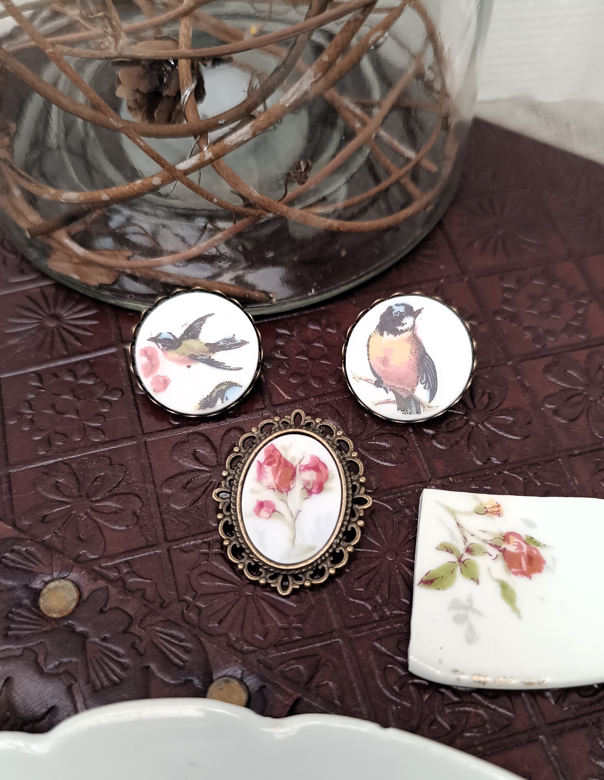 • Fragment de porcelaine ancienne assorti aux broches oiseaux