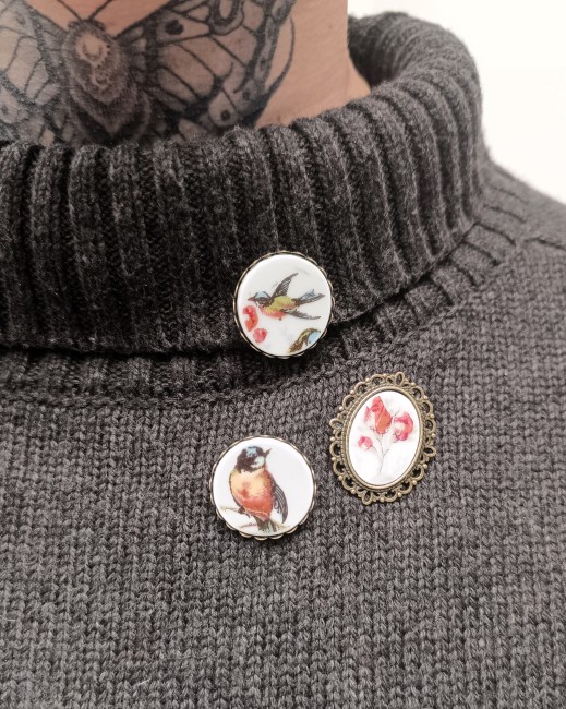 Oiseaux & roses – Création artisanale française – Pièces uniques