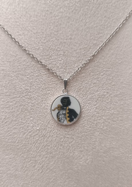 Pendentif en porcelaine ancienne de Limoges – Scène romantique « Le marquis »