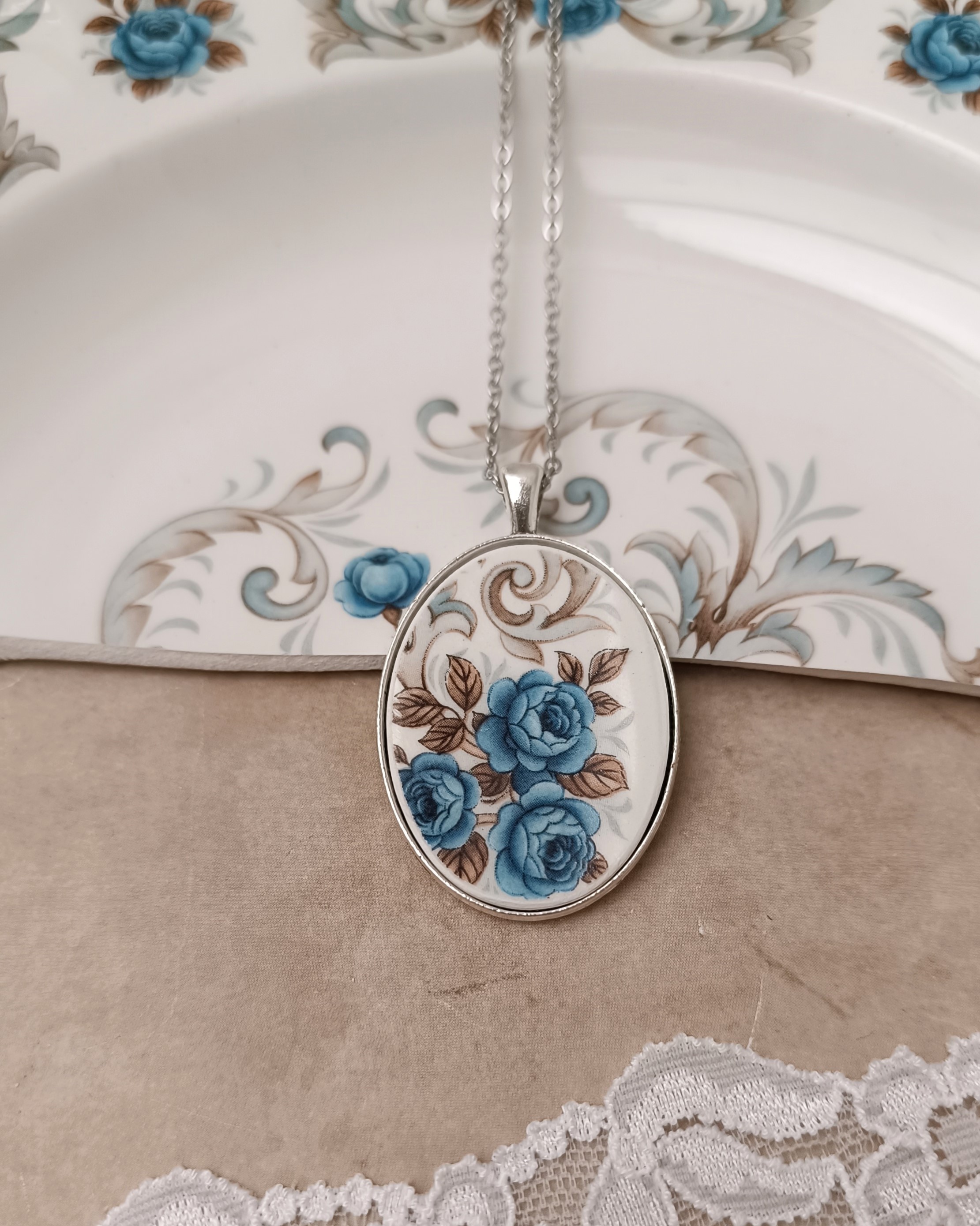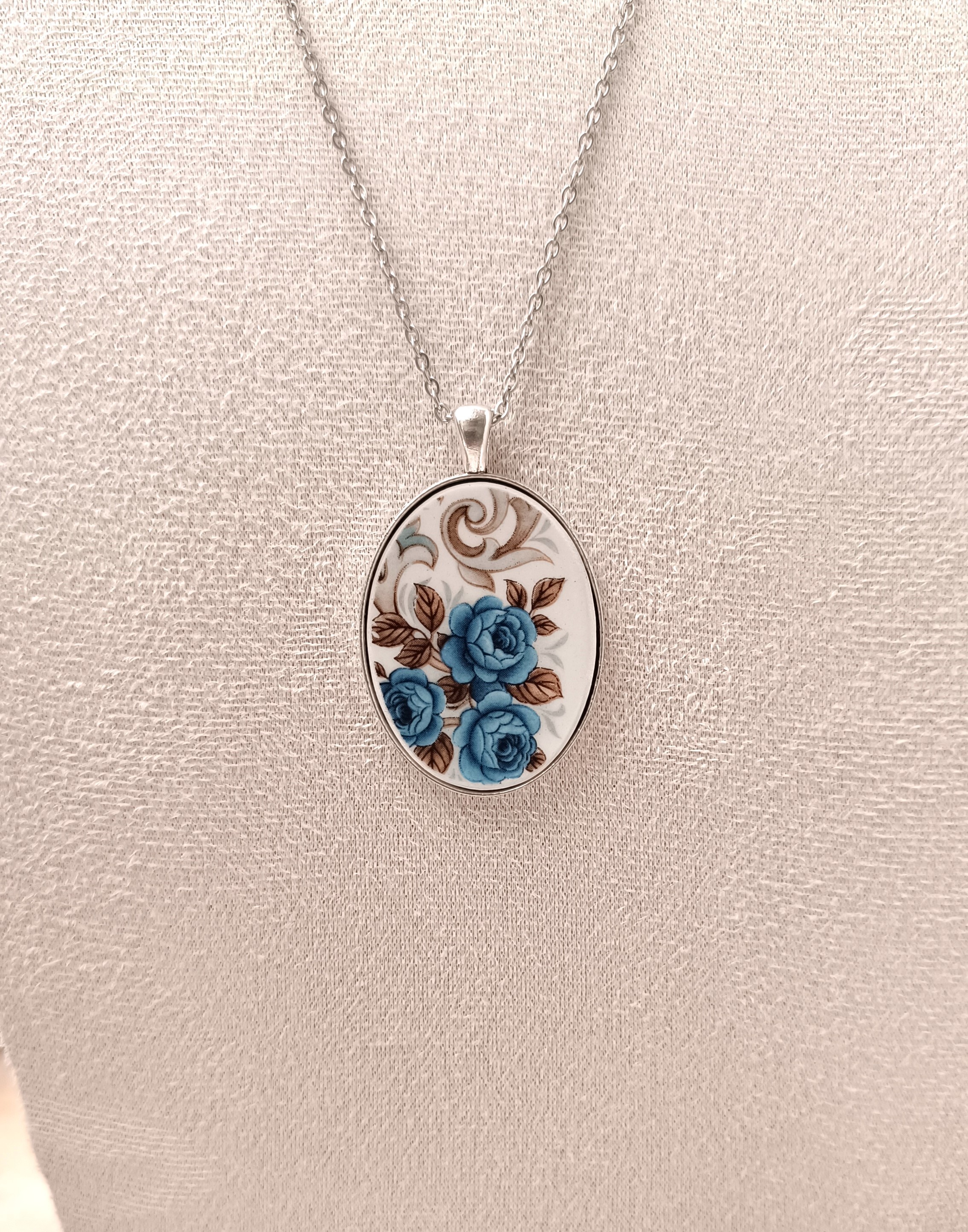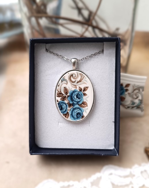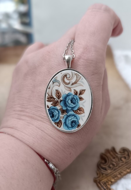 Pendentif en faïence ancienne Moulin des Loups – Roses bleues