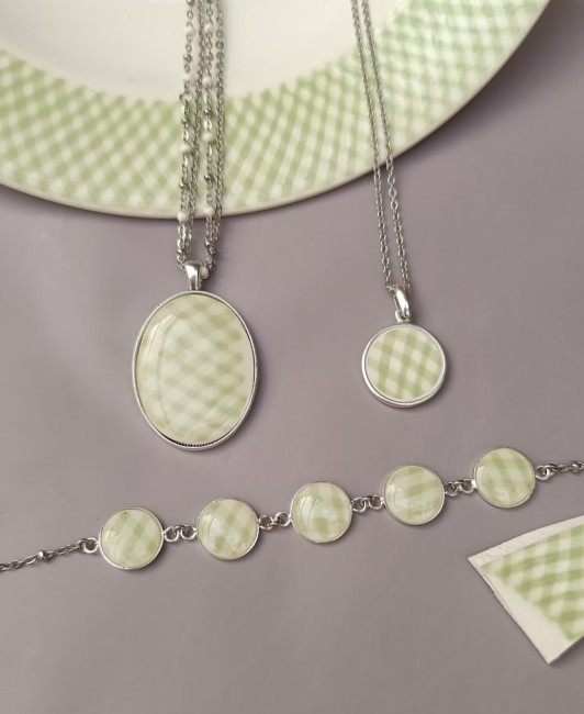 Motif : faïence ancienne à décor vichy vert sauge et crème