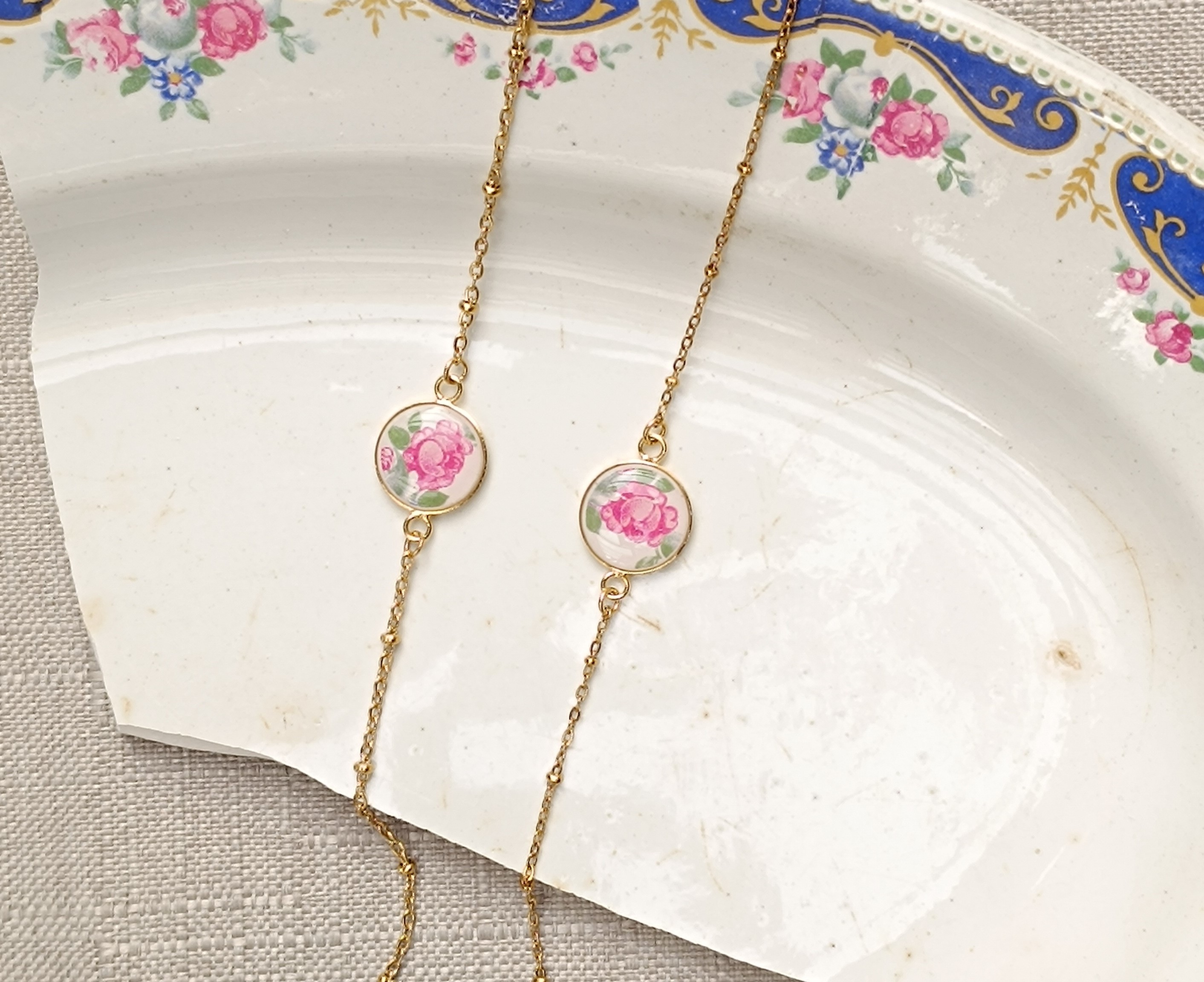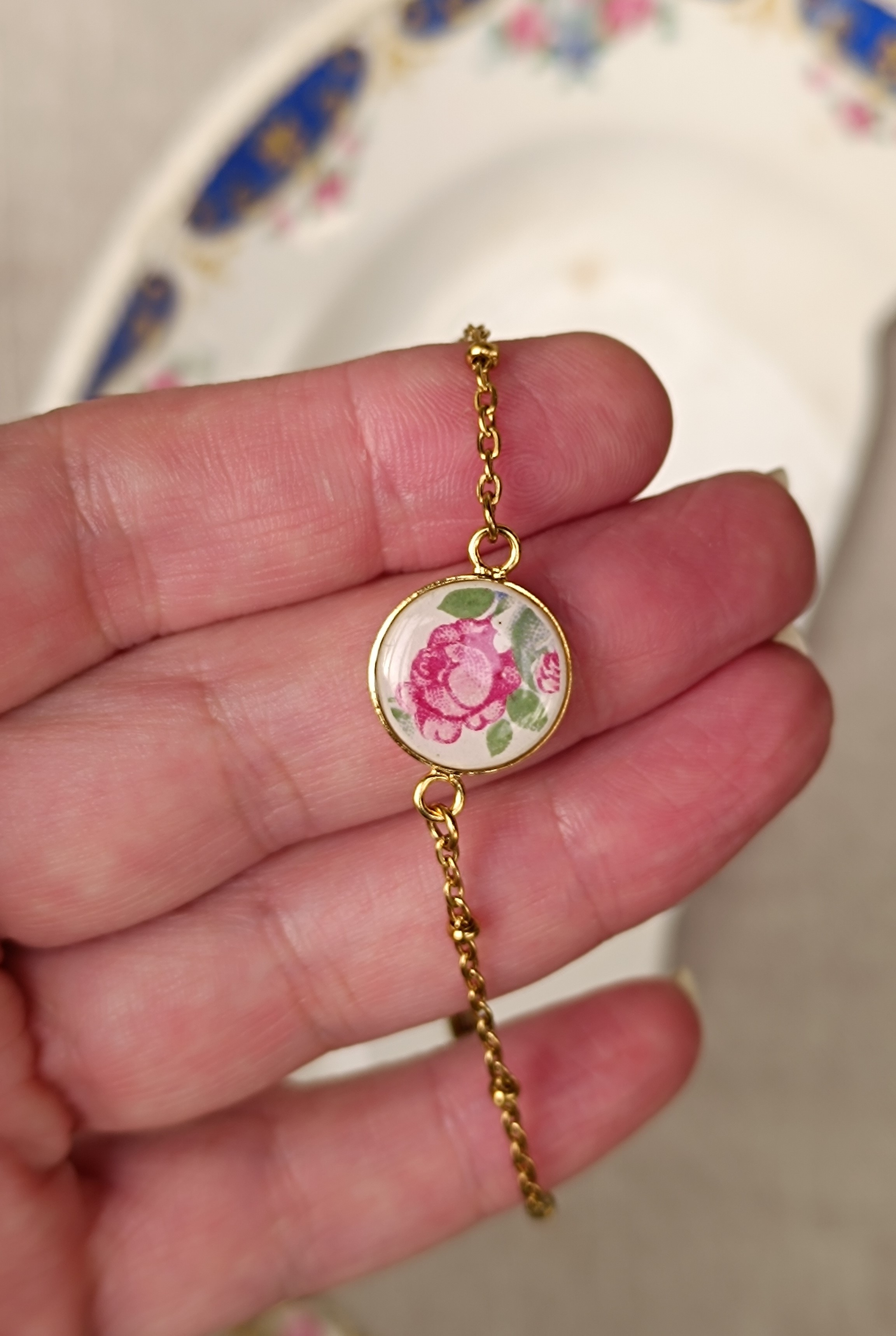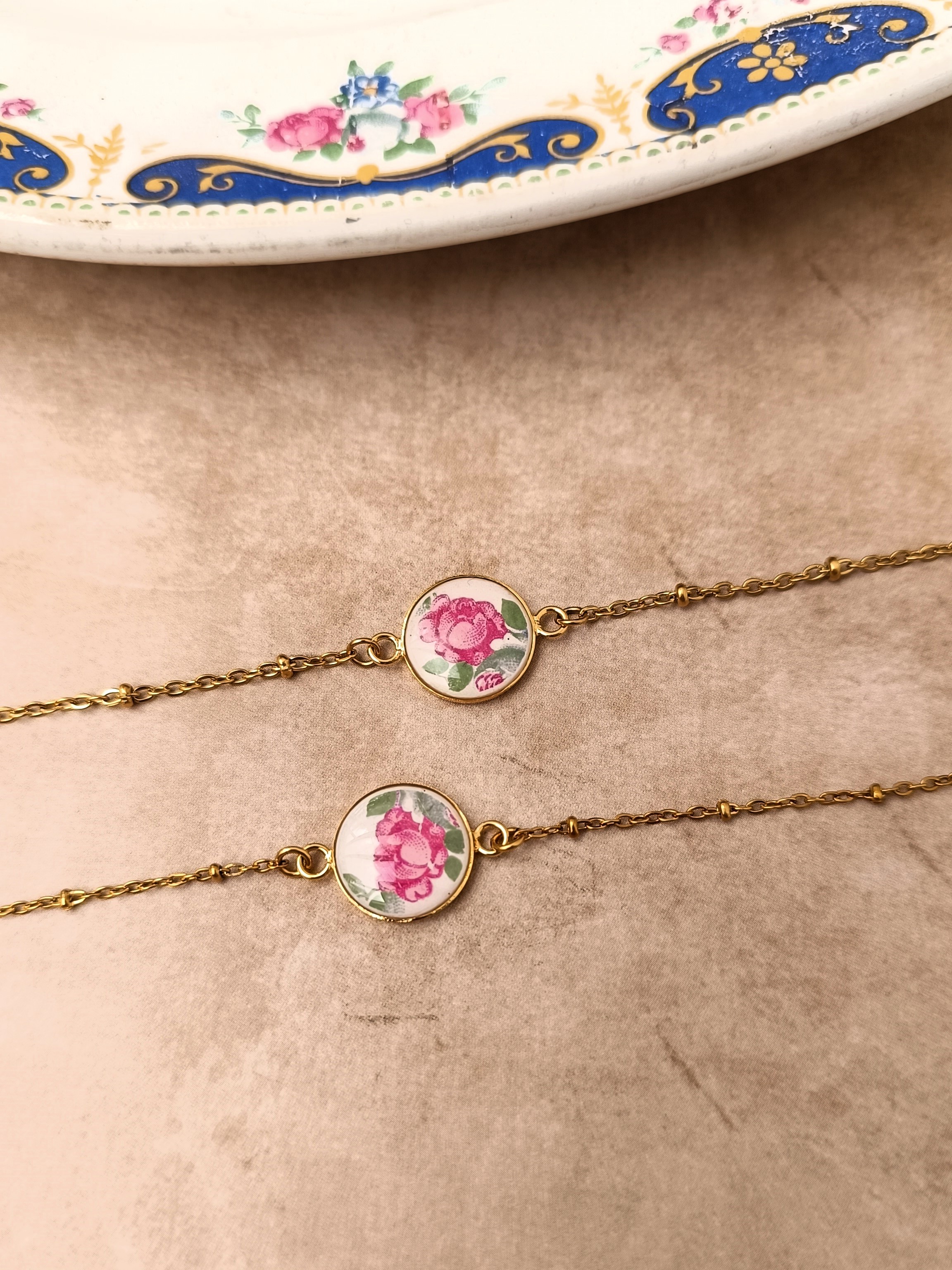 Ces bracelets ont été réalisés à partir d’un plat ancien en faïence, confié par Coralie afin de préserver et transmettre un objet chargé d’histoire.