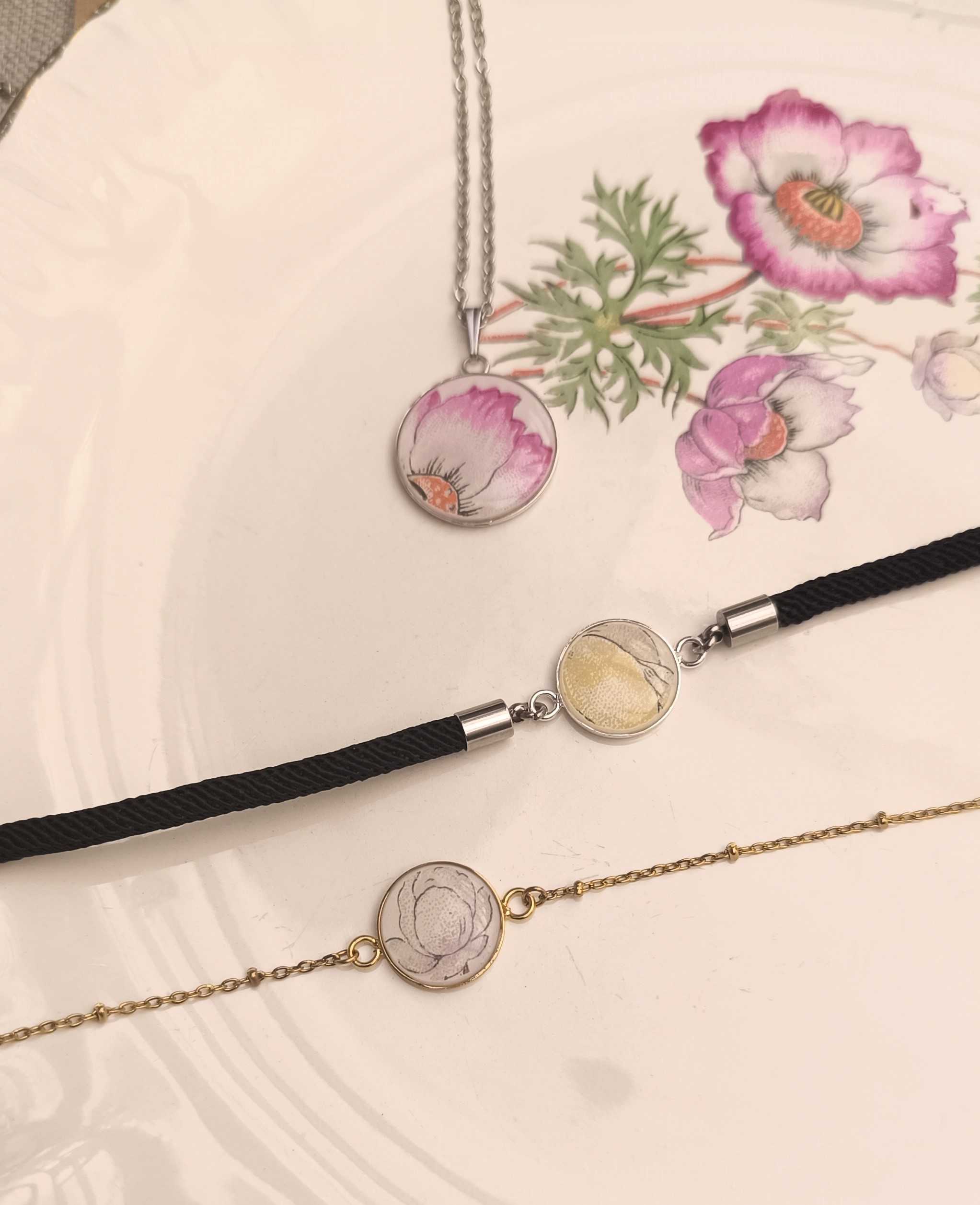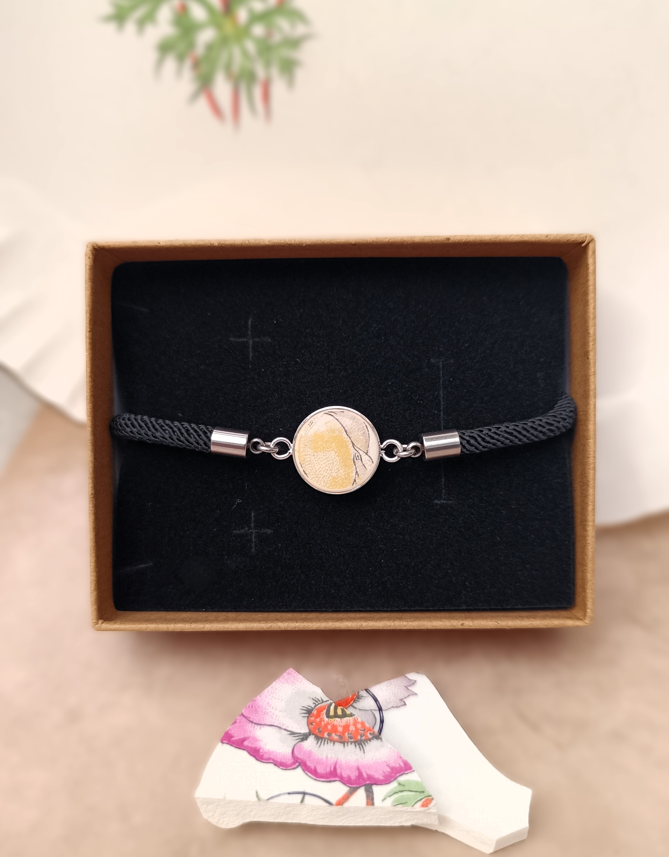 Chaque bijou est unique : les nuances, micro-irrégularités et traces du temps font partie intégrante de l’histoire de la faïence.