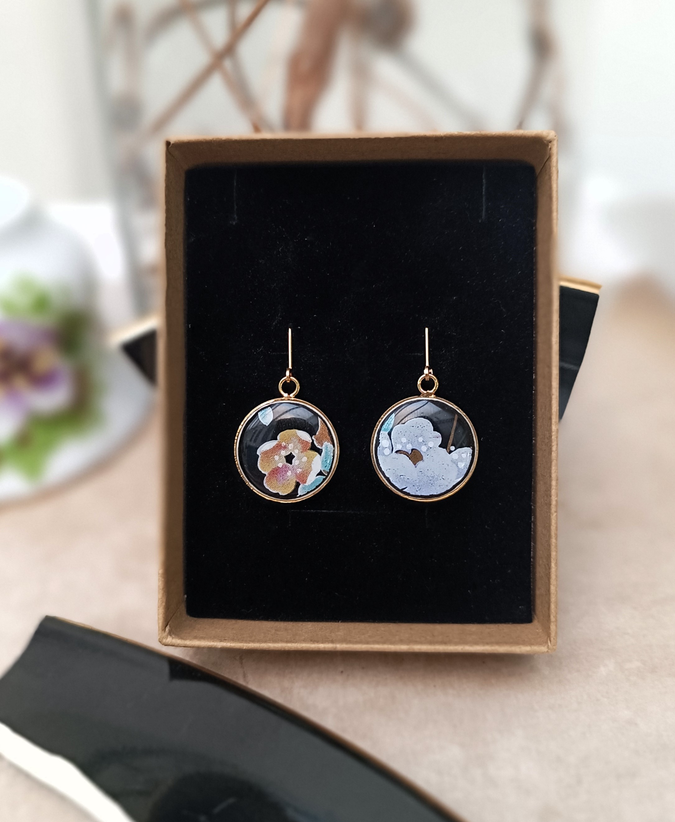 Boucles d’oreilles Nuit de Chine – Dormeuses asymétriques