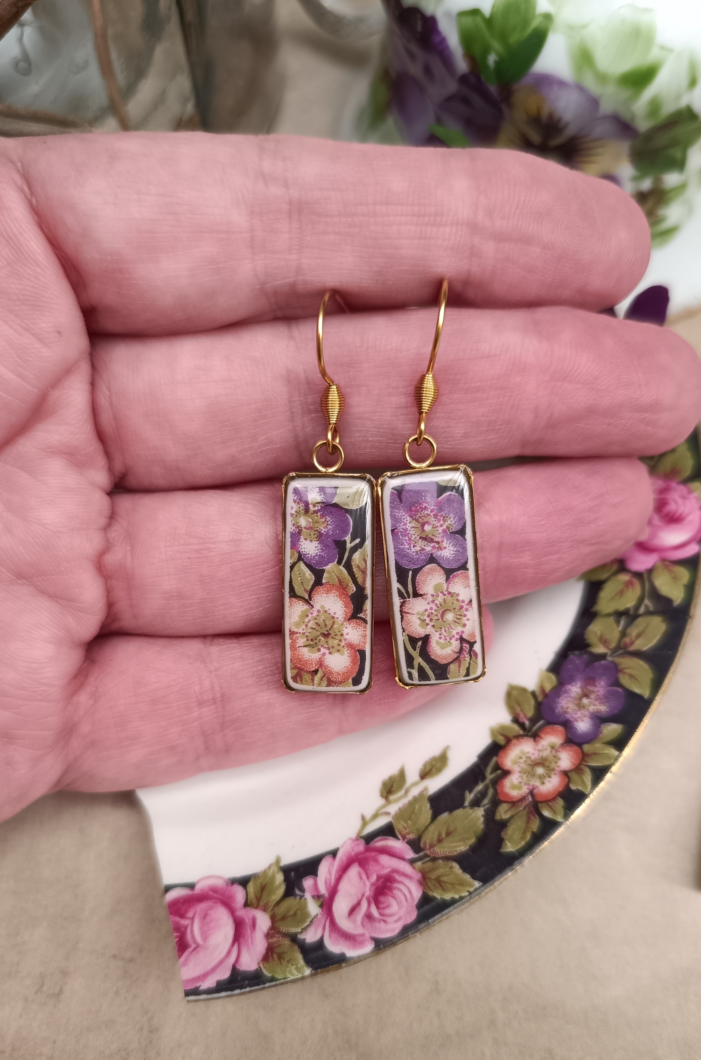Boucles d’oreilles Nuit d’Avril – Porcelaine anglaise ancienne