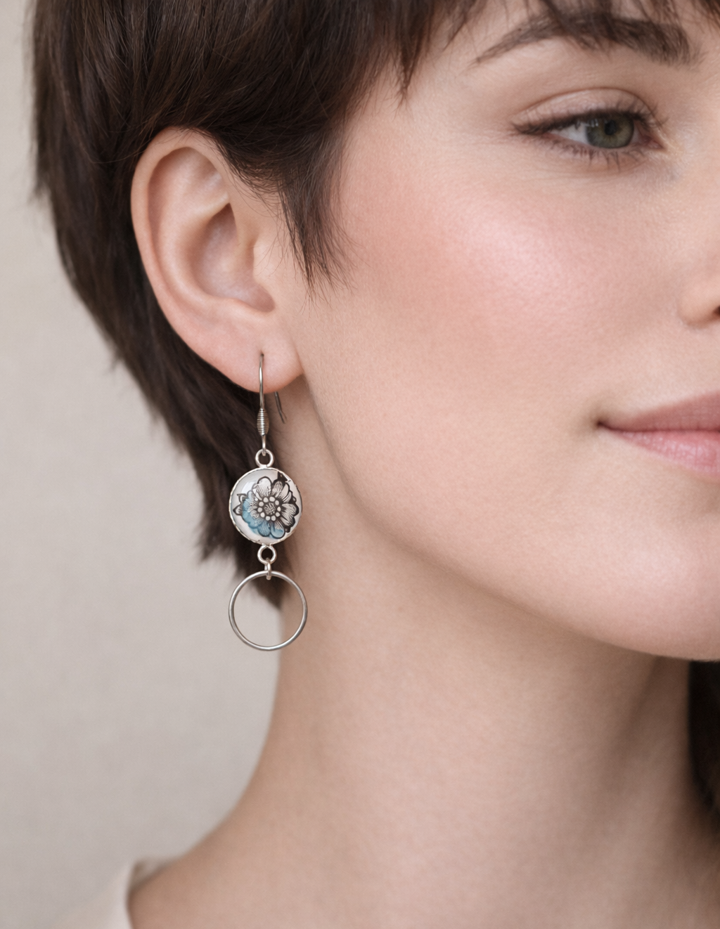 Chaque paire est unique : le placement du motif floral rend l’asymétrie encore plus précieuse.
