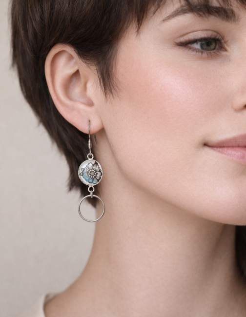 Boucles d’oreilles Divine – Fleurs turquoise asymétriques