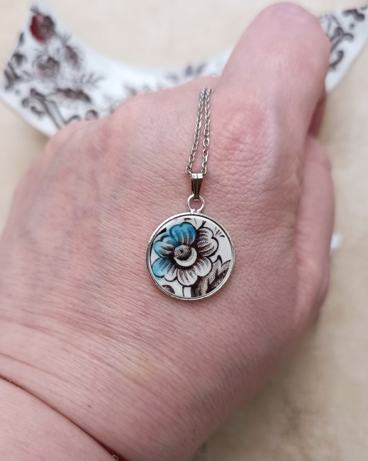 Collier Divine – Fleur turquoise – Porcelaine anglaise Ridgway Clifton