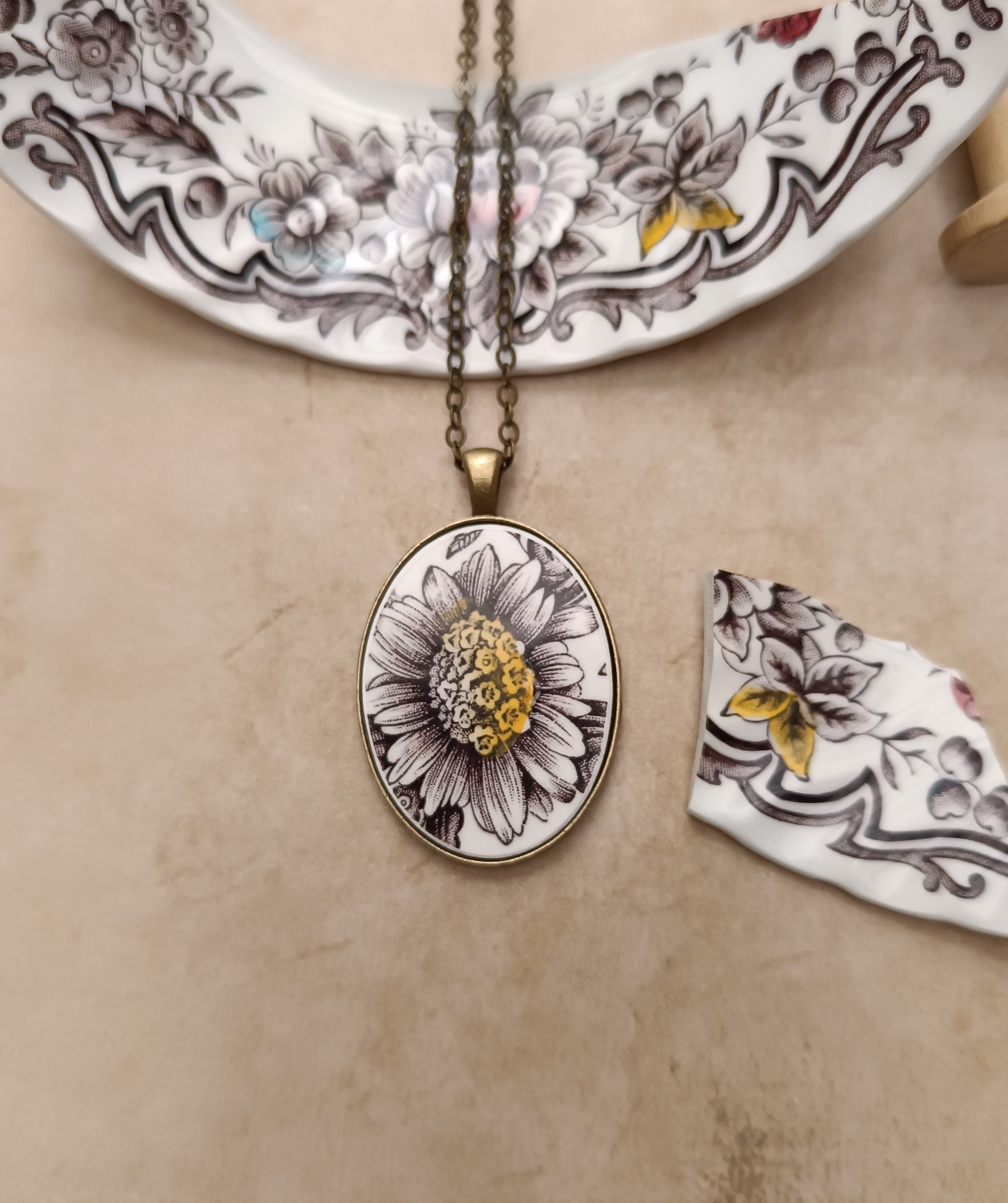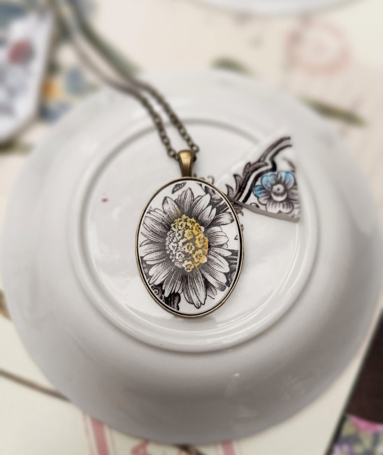 Collier Divine – Fleur soleil – Porcelaine anglaise Ridgway Clifton