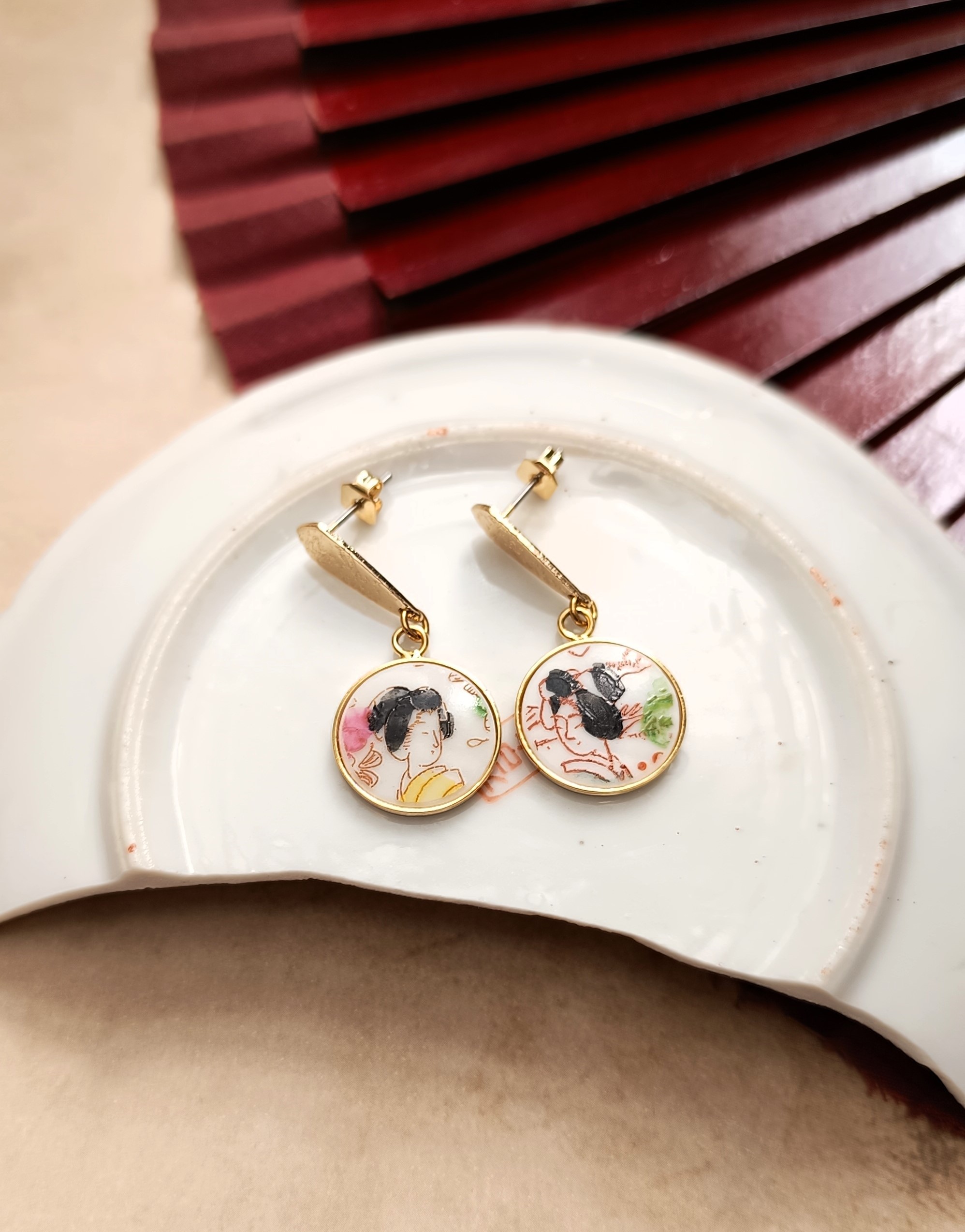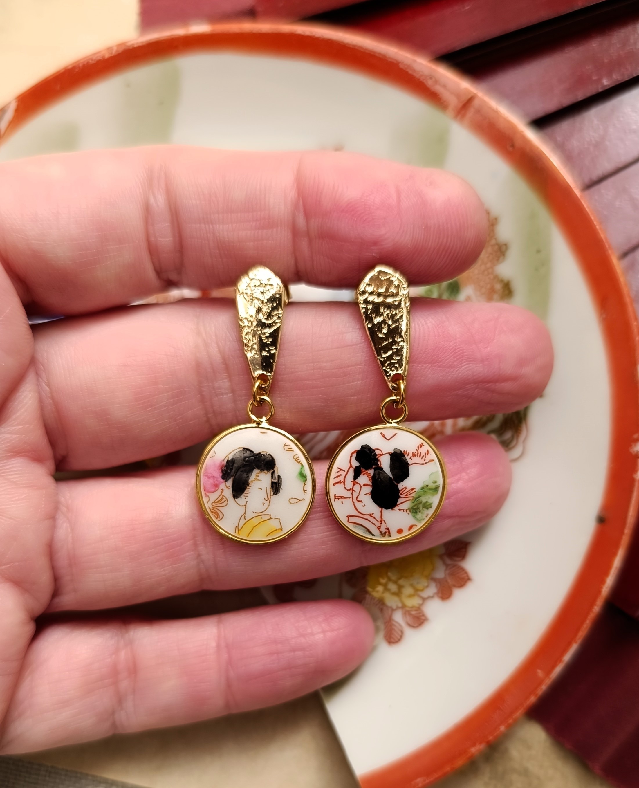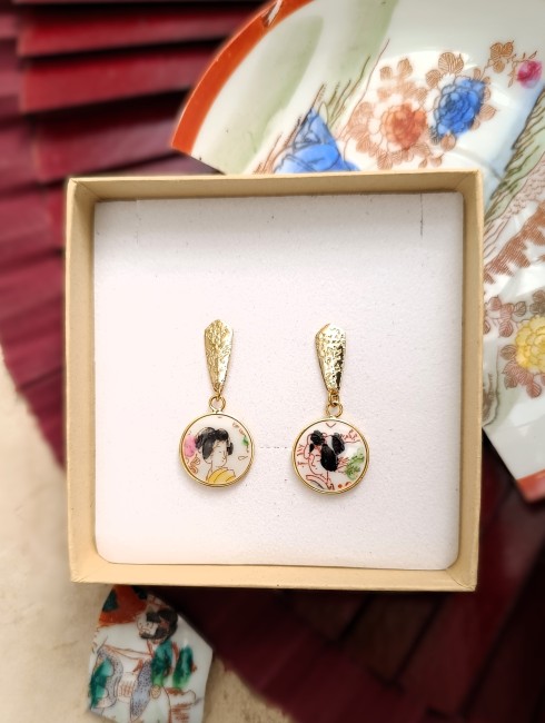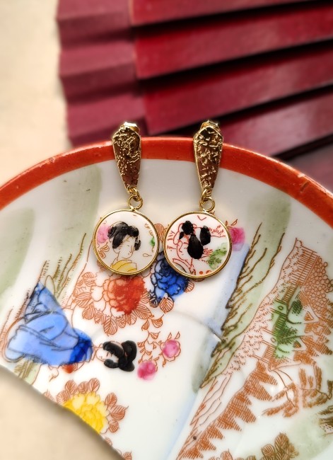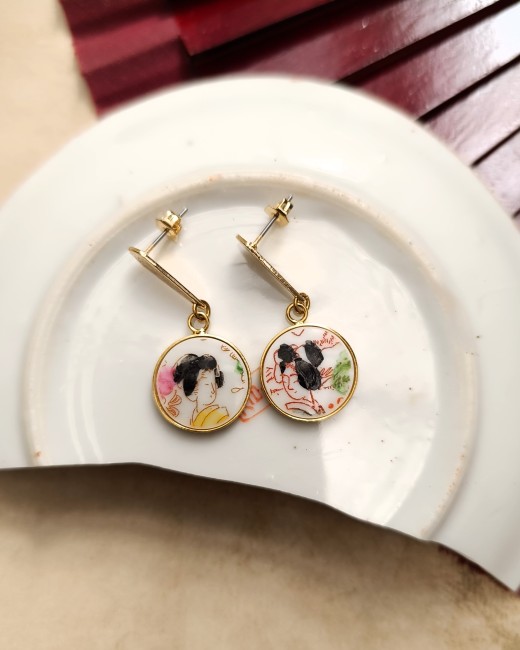 Boucles d’oreilles Geisha – Porcelaine japonaise vintage