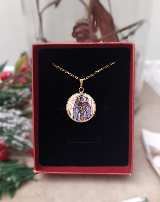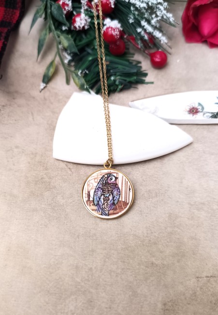 Romantika - Collier au pendentif ovale en faïence ancienne