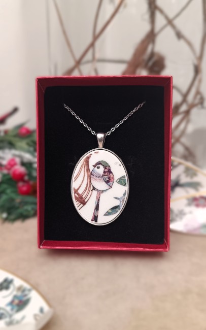À la Volette – Collier en porcelaine transformée motif oiseau