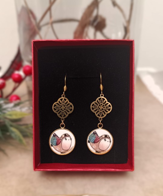 Boucles d’oreilles – À la Volette – motif oiseau en porcelaine